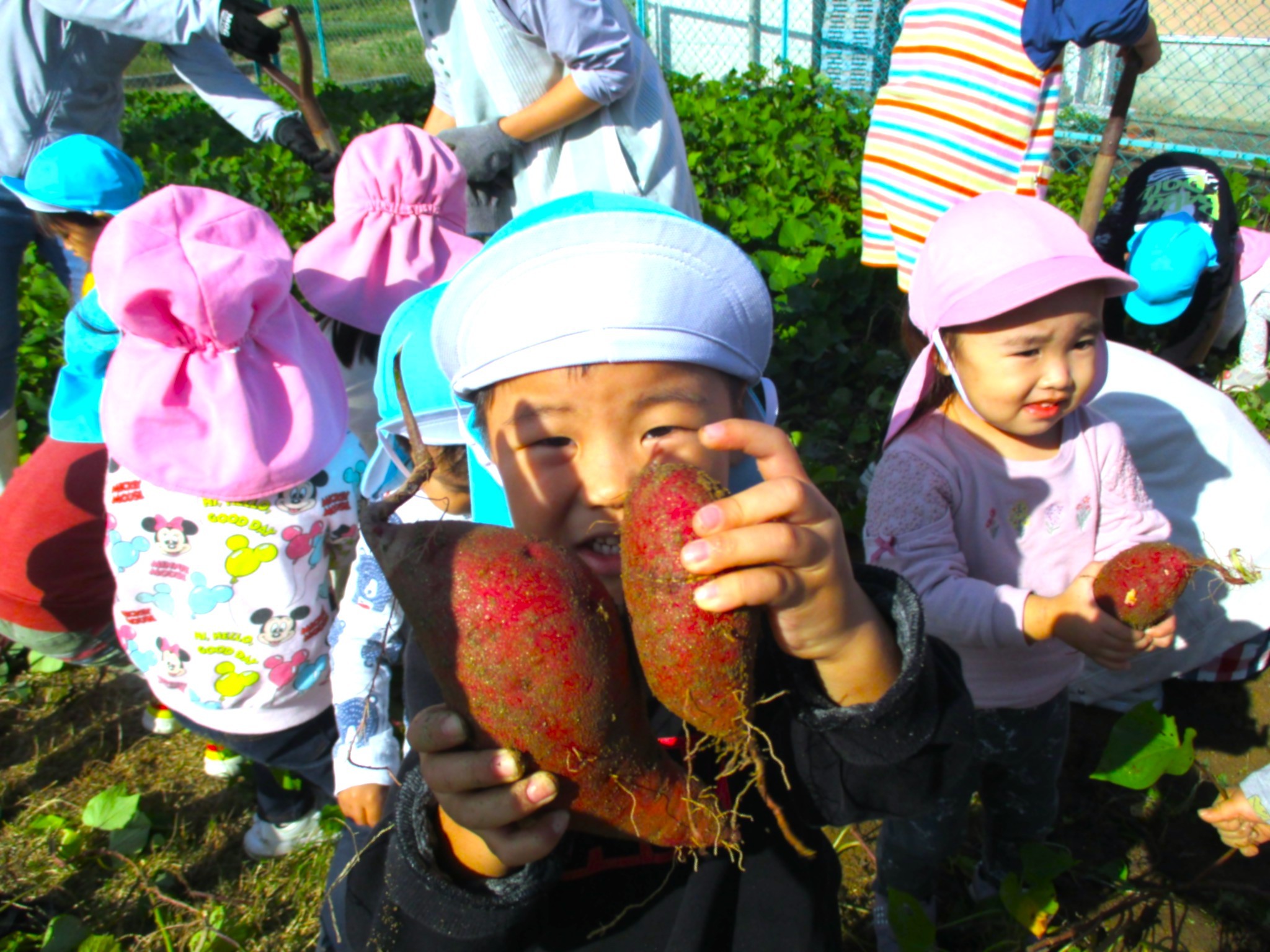 芋掘りや秋の親子遠足ではみんなで力を合わせて収穫やお出かけを楽しみます。