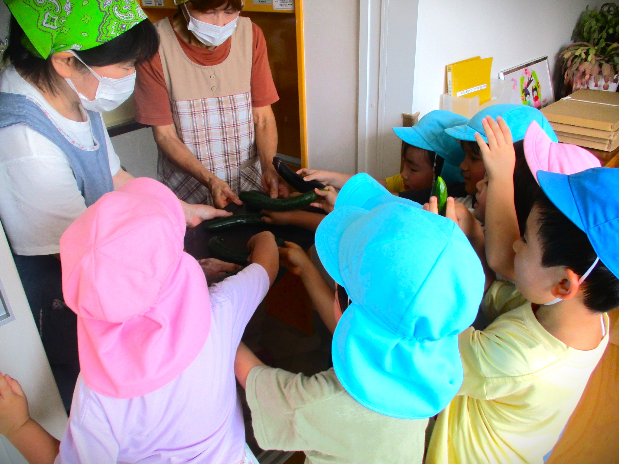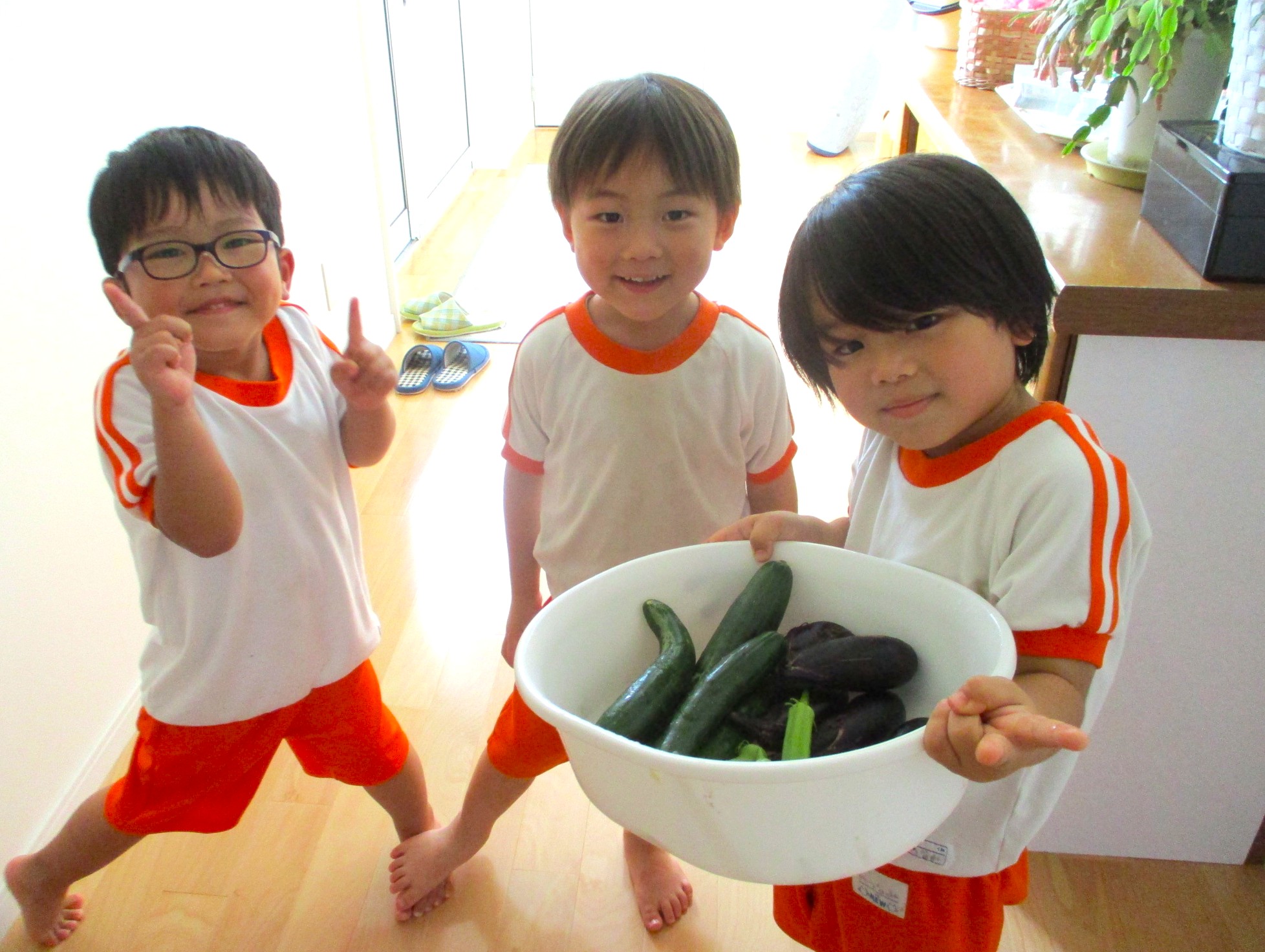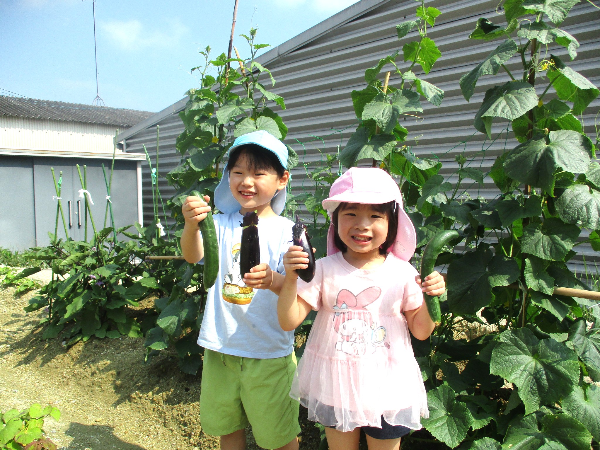 畑では太陽の光をいっぱいに浴びた夏野菜を収穫し、「とれたよ!」と喜びを分かち合いながら、夏ならではの体験を楽しんでいきます。