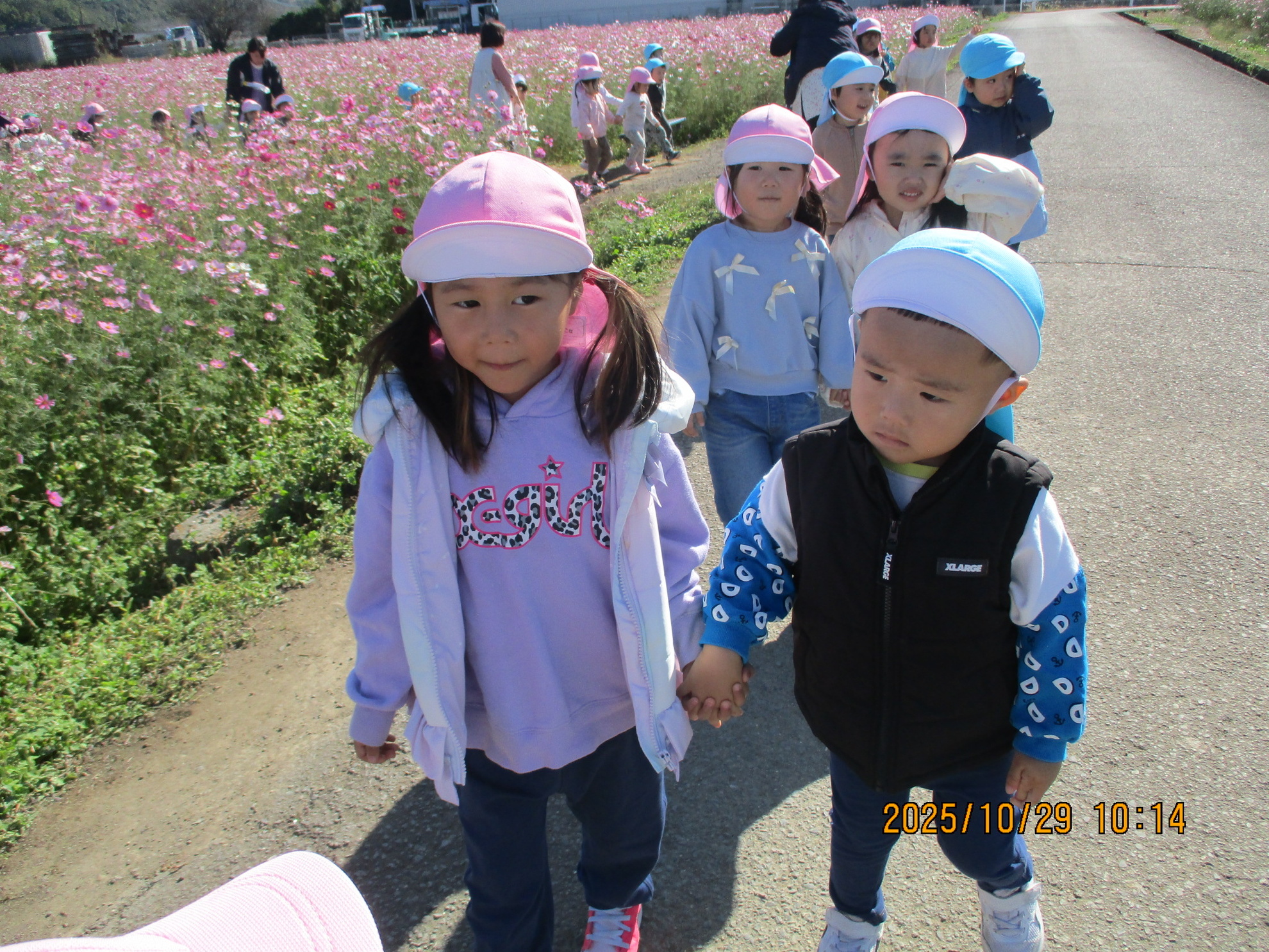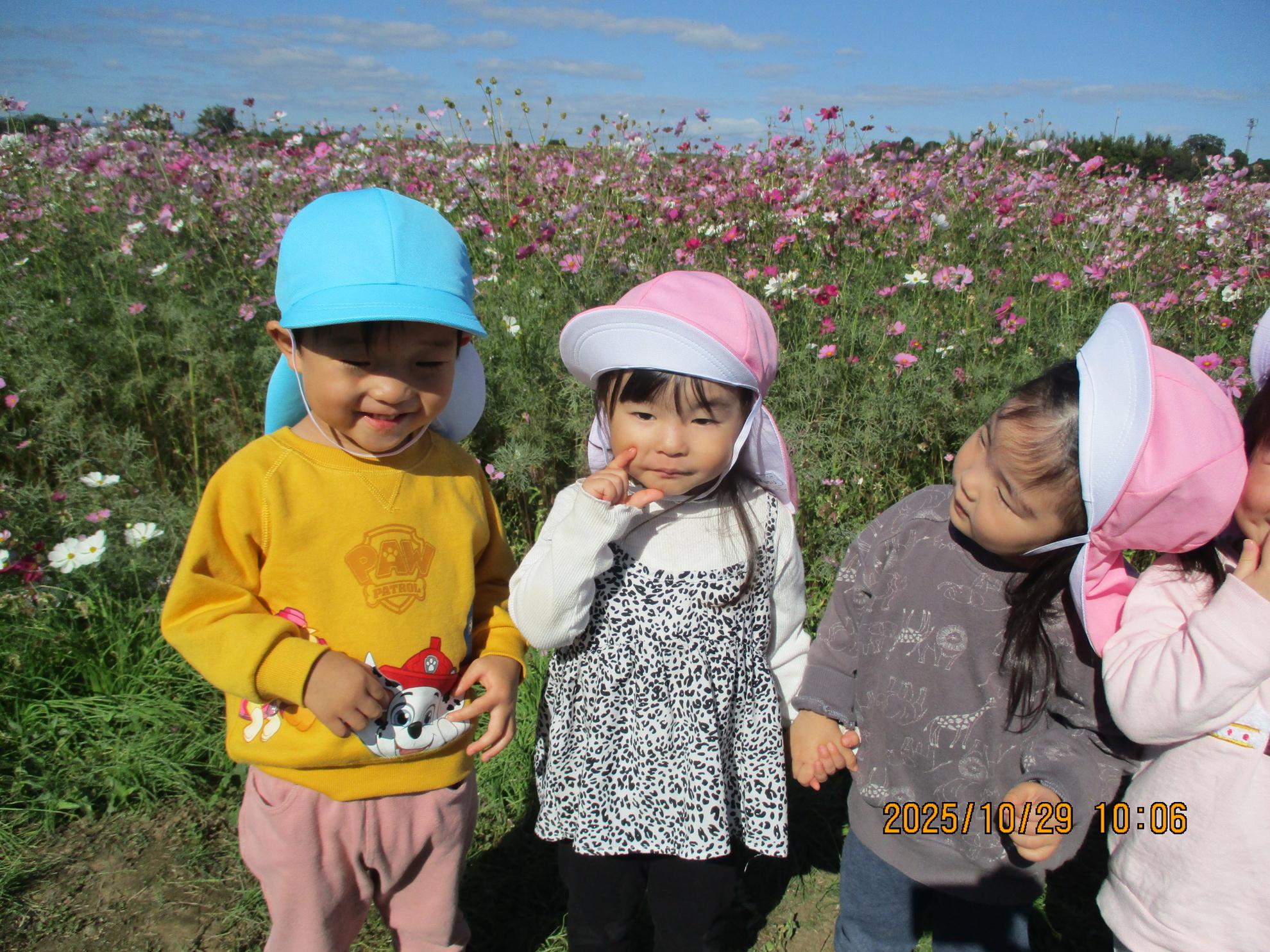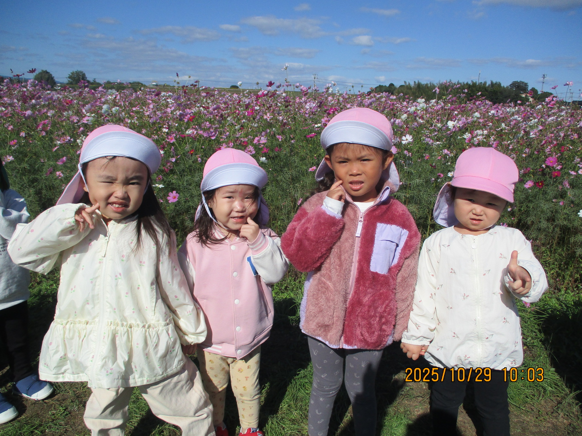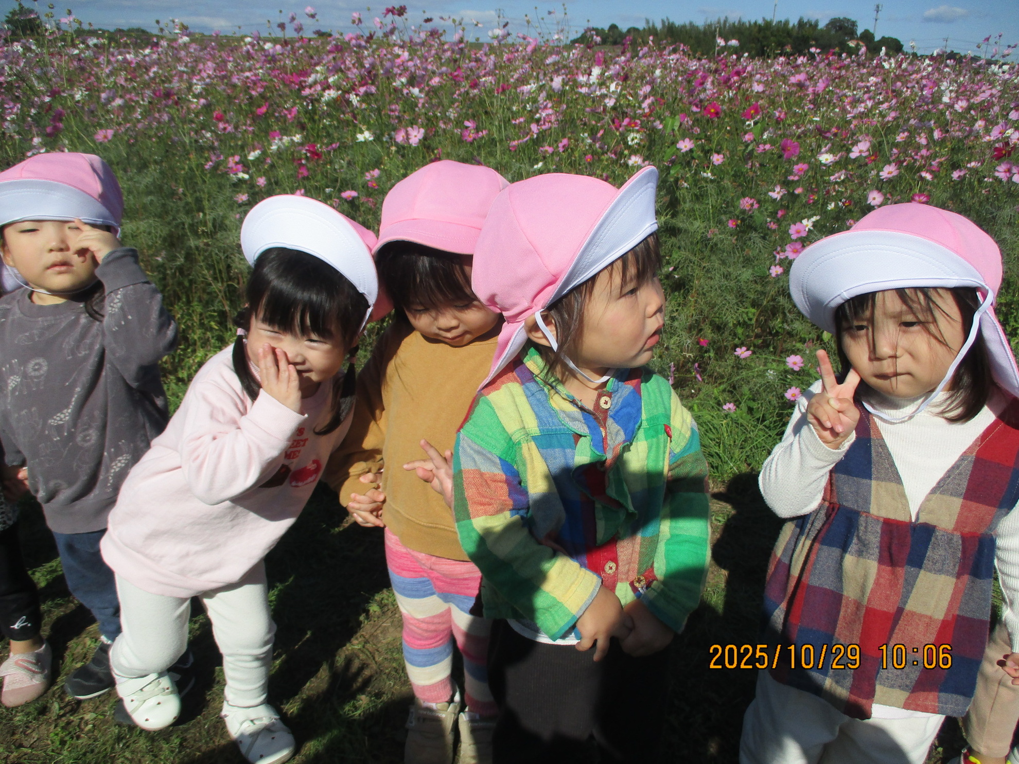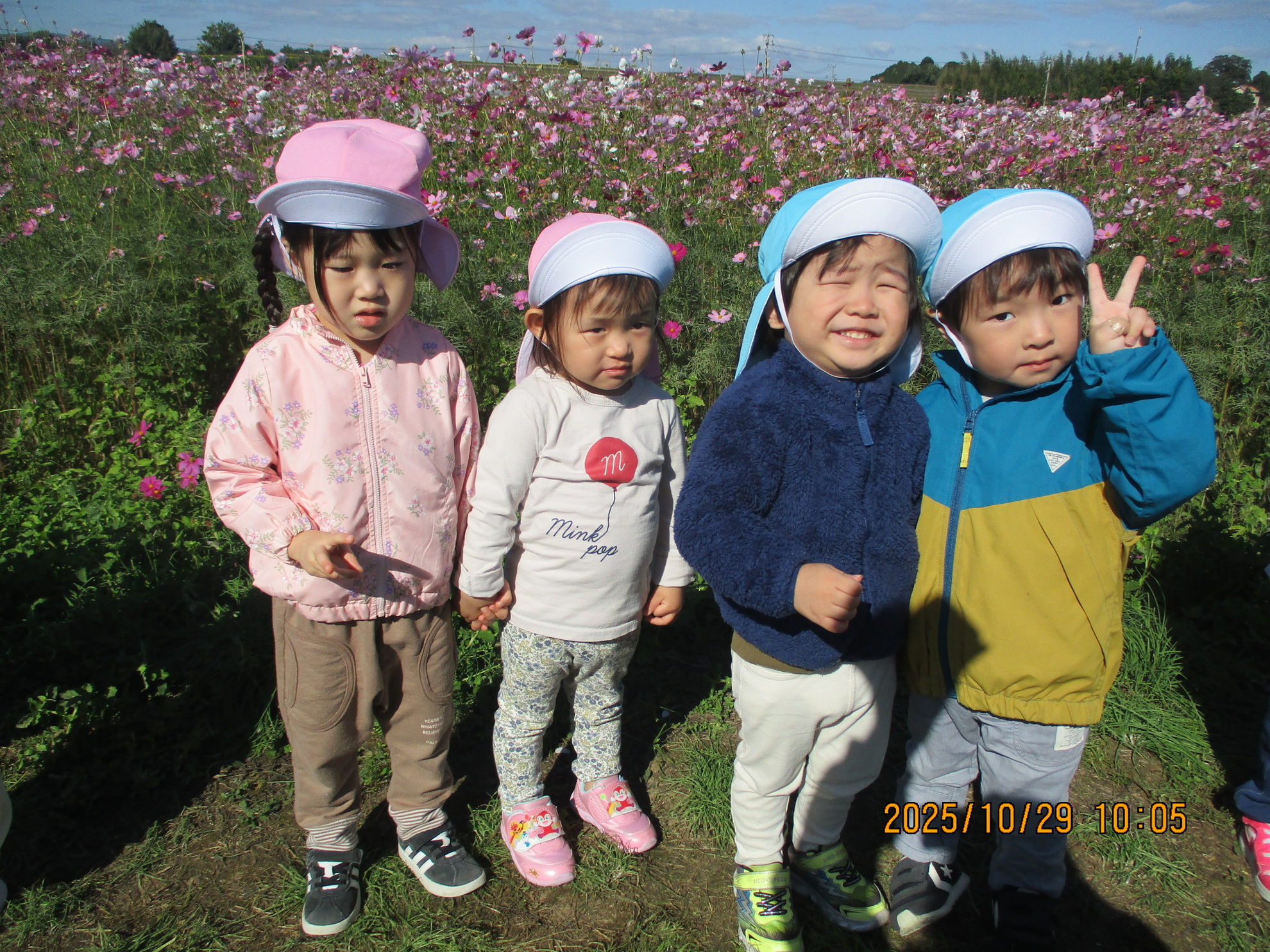 🌼うめ組さん・もも組さんでバスに乗ってコスモス園に行ってきました🌼 澄んだ秋空の下、子どもたちは笑顔いっぱいでバスに乗り込みました。窓の外には一面に広がるコスモスの花🌻「きれいだね!」「早く行きたい!」と、車内はワクワクした声と笑い声であふれていました。お天気にも恵まれ、目的地までの道のりも楽しい時間に✨はしゃぐ子どもたちの姿から、期待と喜びが伝わってきましたよー☺️ カテゴリー: 投稿日:2025年10月29日 前へ次へ