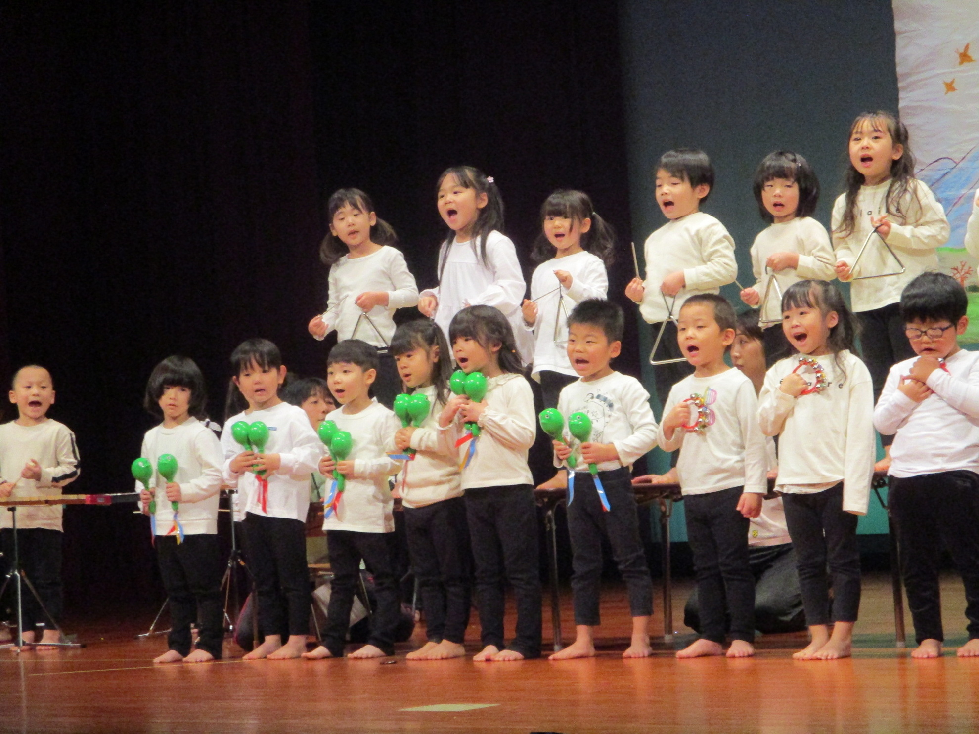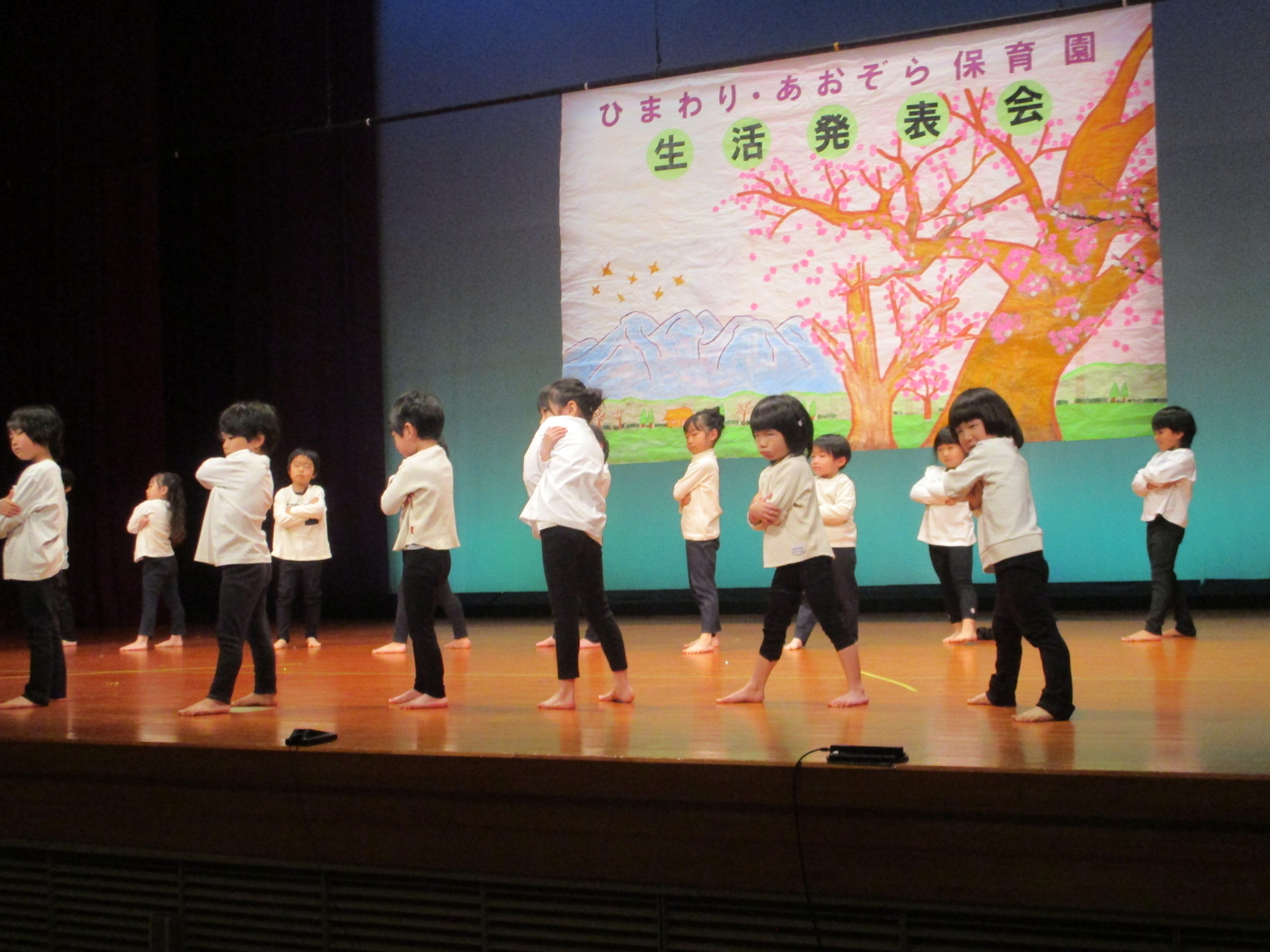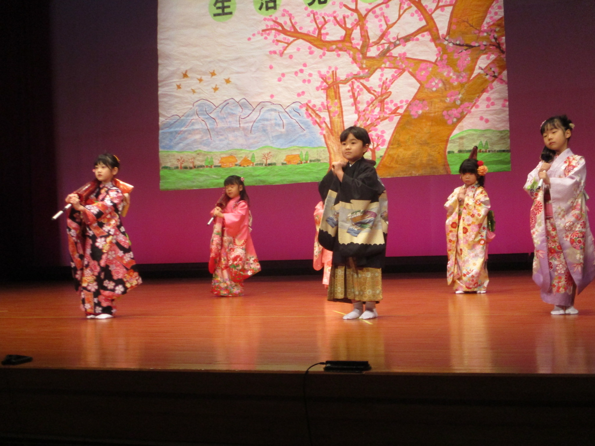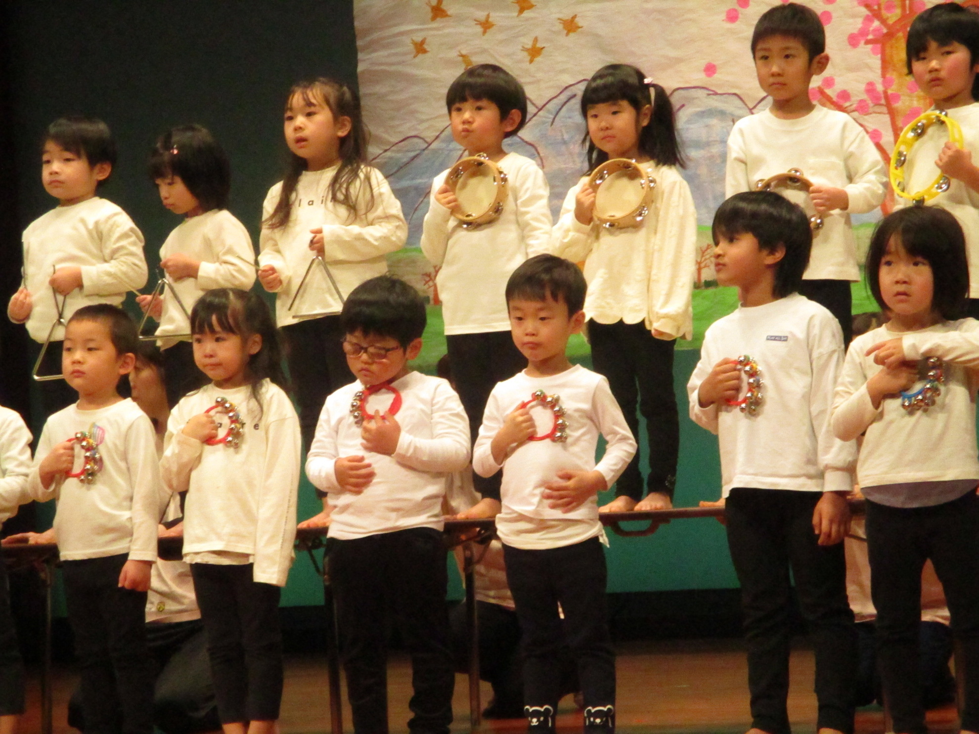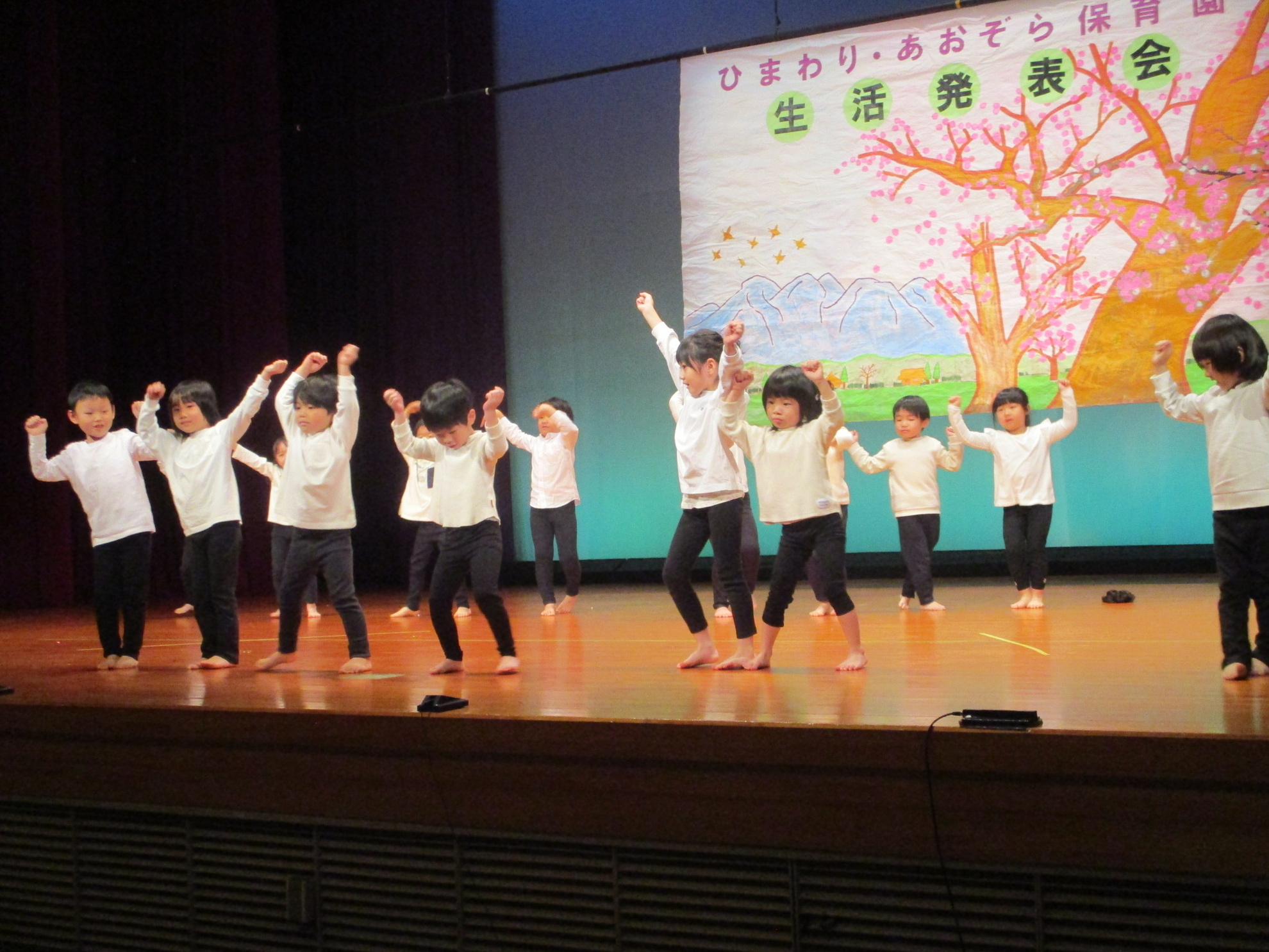 生活発表会がありました。 生活発表会には、沢山の応援や声援をありがとうございました。年齢に応じた発表で、子どもたちがそれぞれ頑張っていましたね。 今から生活発表会を始めます。 男子の着物姿もいいでしょ! しなやかな、足と手さばきが素敵です。 一番小さいクラスのお友だちも、舞台で頑張りました。可愛かったですね。 リトミックの先生とがんばりました。 十二支のお話は、どの子も素敵でしたね。 さくら、ふじぐみの合唱と合奏が最高に素敵で、キラキラ輝いていましたね。 瀬克発表会に沢山の応援や声援で子どもたちは無事に終える終えることができました。ありがとうございました。 カテゴリー: 投稿日:2026年01月13日 次へ