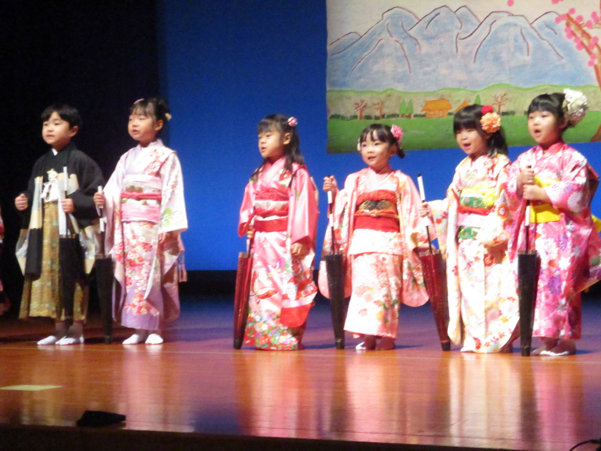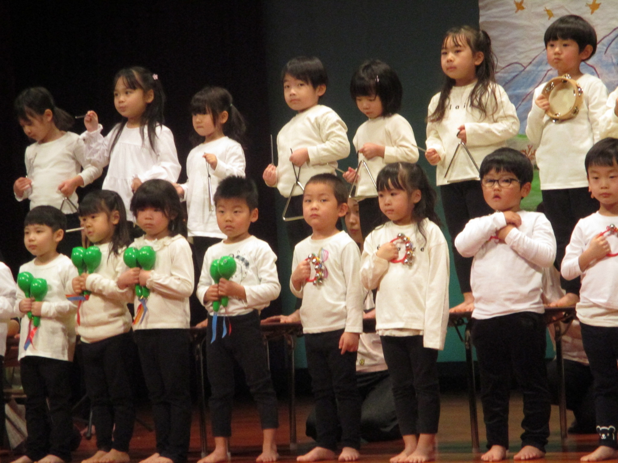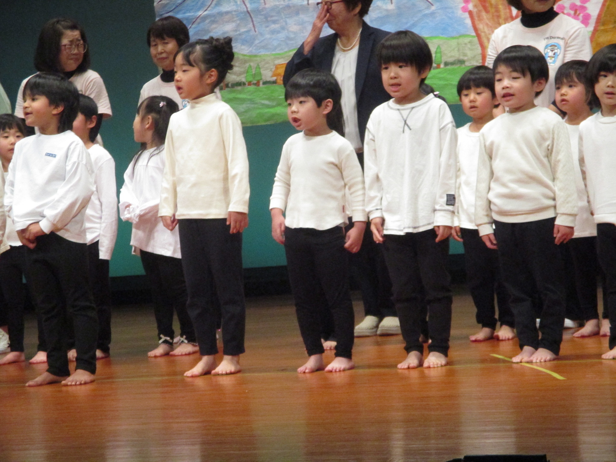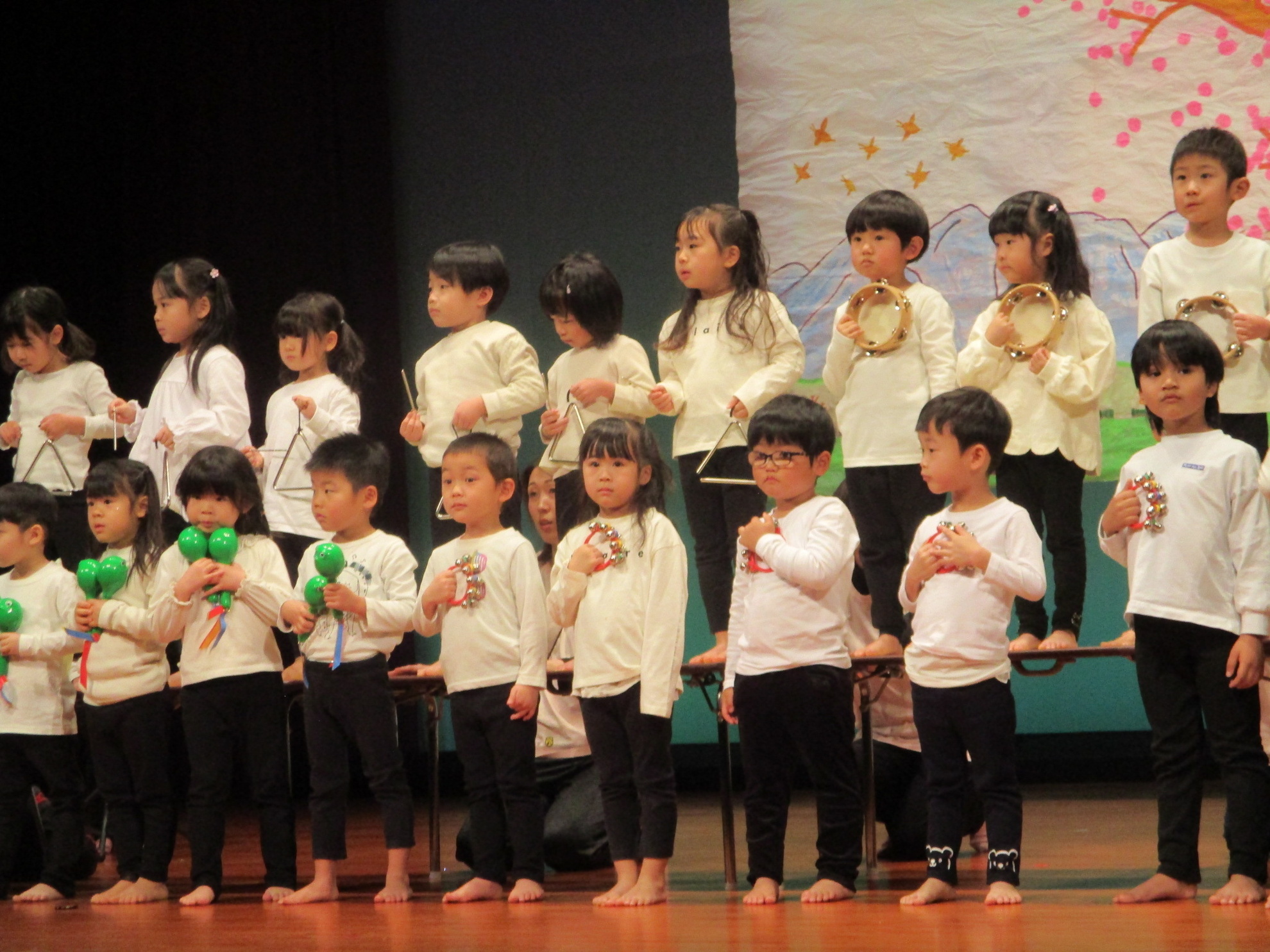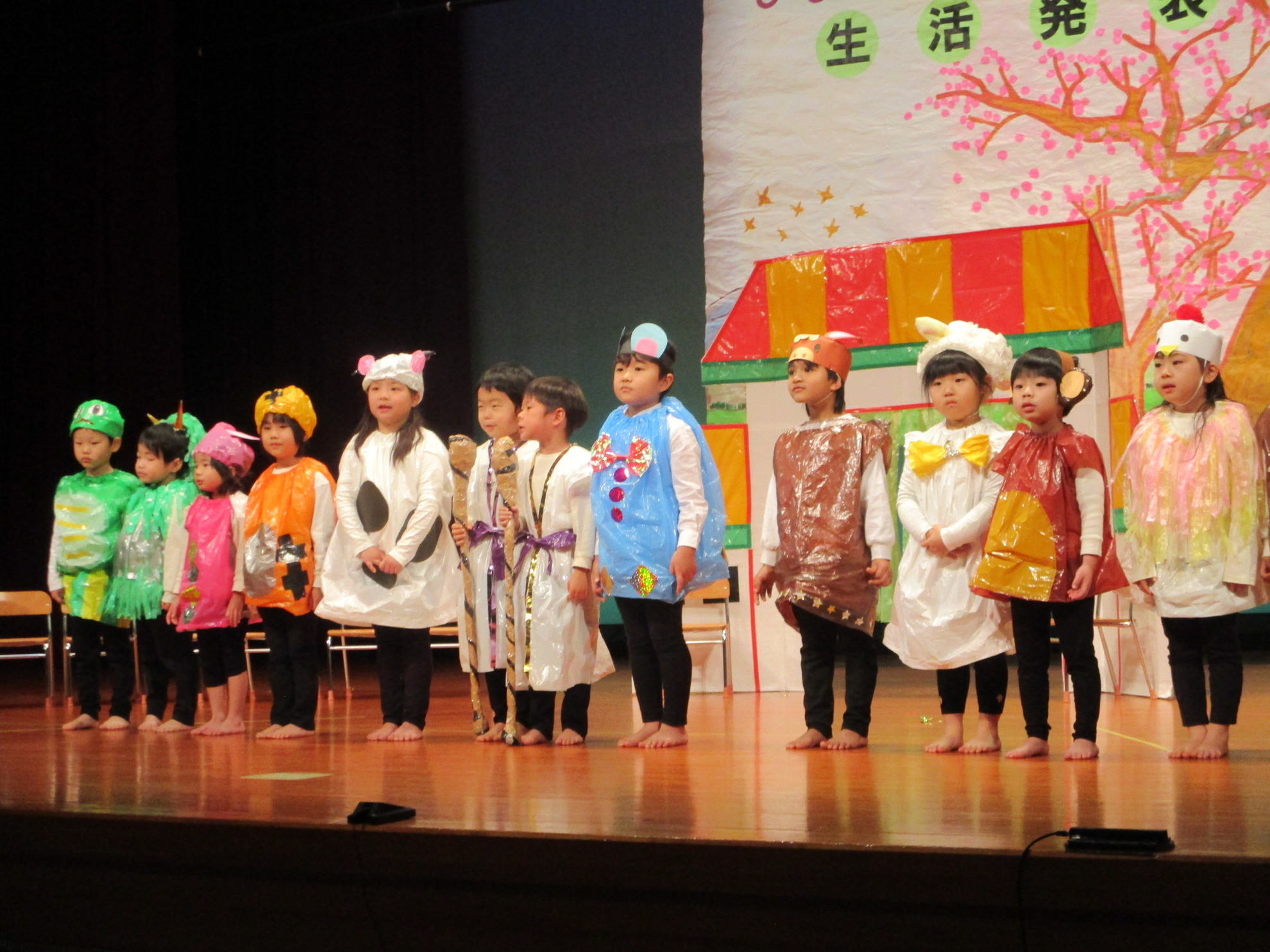 生活発表会がありました。 生活発表会には、沢山の応援や声援をありがとうございました。年齢に応じた発表で、子どもたちがそれぞれ頑張っていましたね。 今から生活発表会を始めます。 男子の着物姿もいいでしょ! しなやかな、足と手さばきが素敵です。 一番小さいクラスのお友だちも、舞台で頑張りました。可愛かったですね。 リトミックの先生とがんばりました。 十二支のお話は、どの子も素敵でしたね。 さくら、ふじぐみの合唱と合奏が最高に素敵で、キラキラ輝いていましたね。 瀬克発表会に沢山の応援や声援で子どもたちは無事に終える終えることができました。ありがとうございました。 カテゴリー: 投稿日:2026年01月13日 次へ