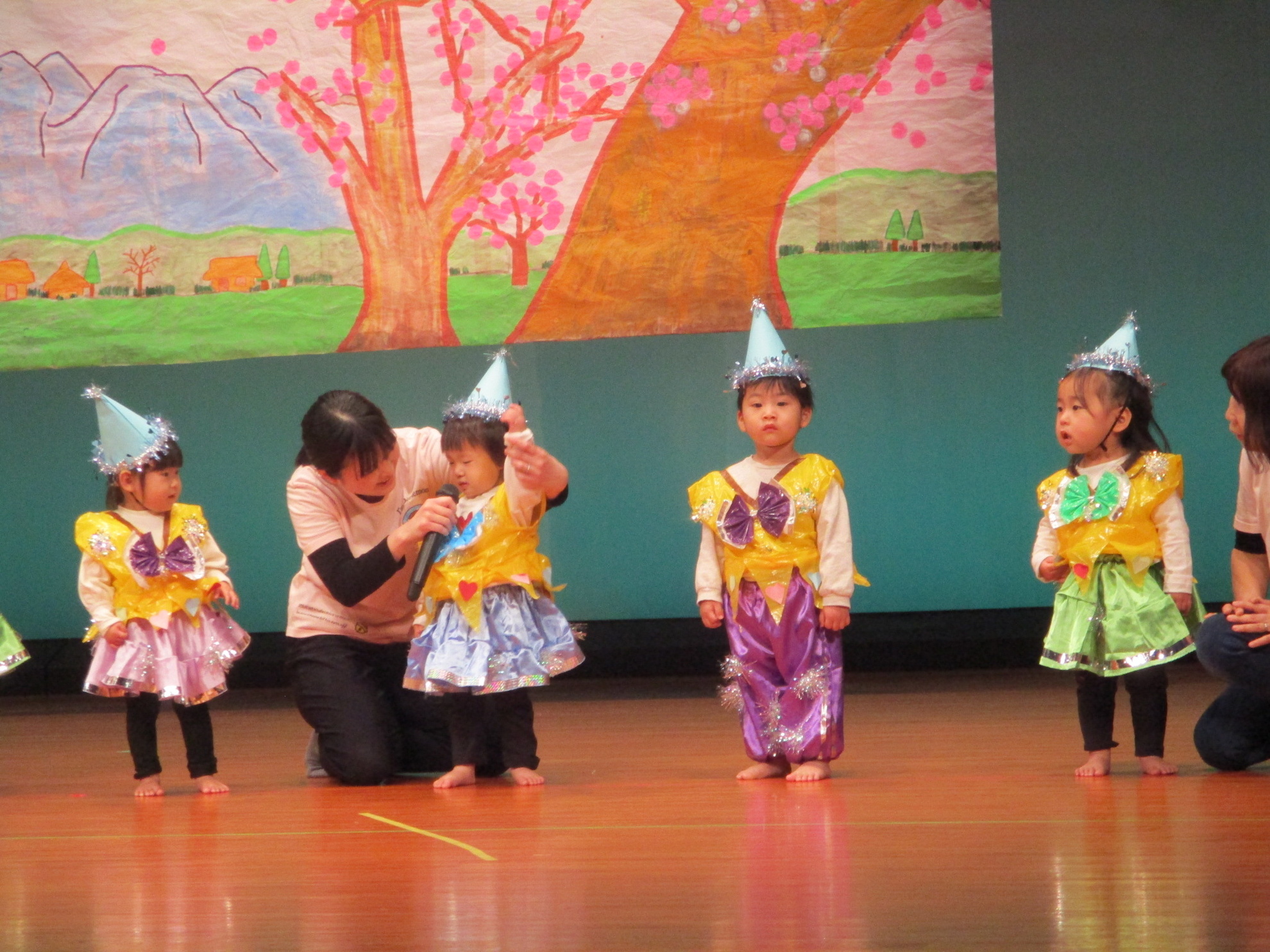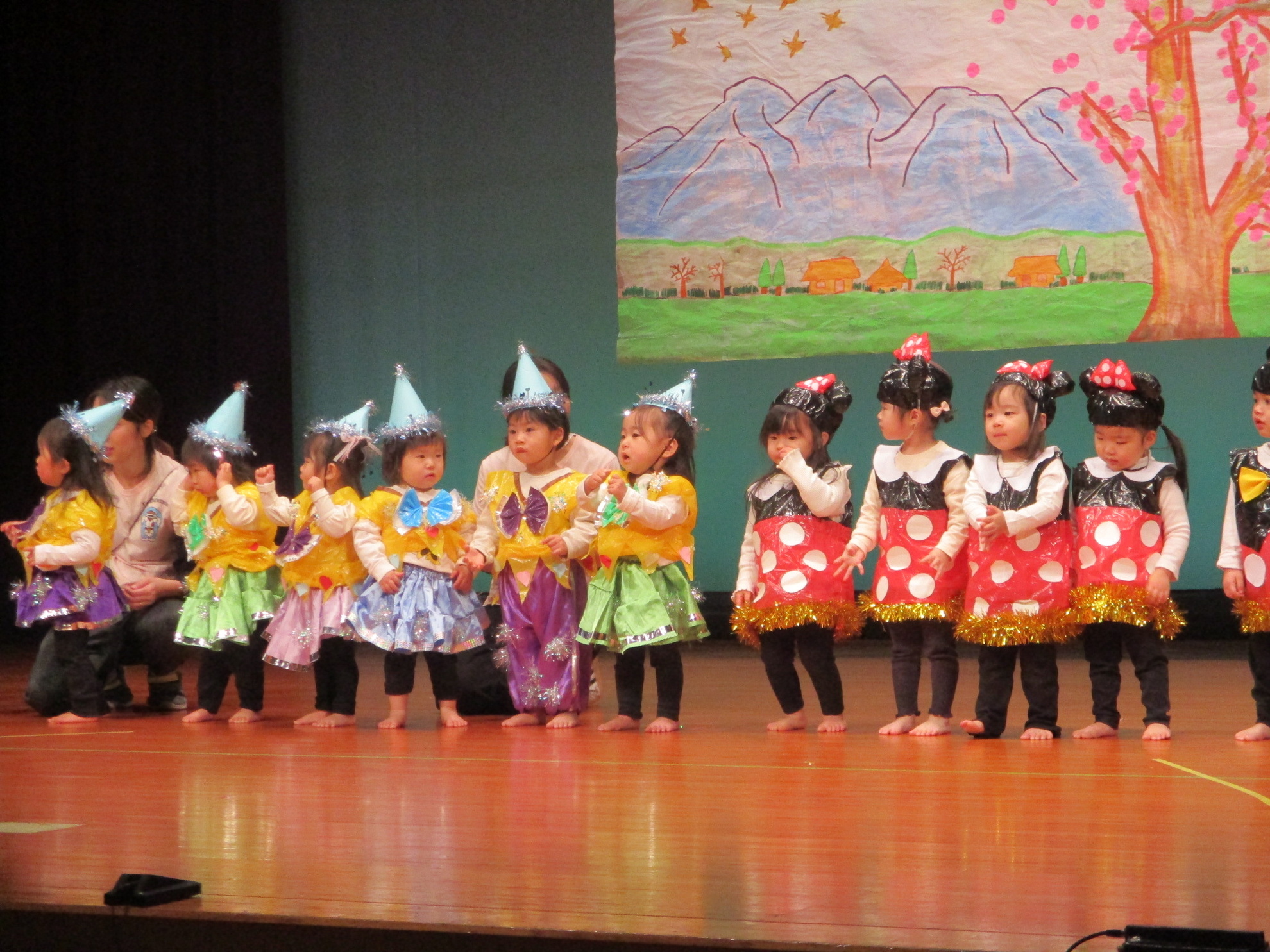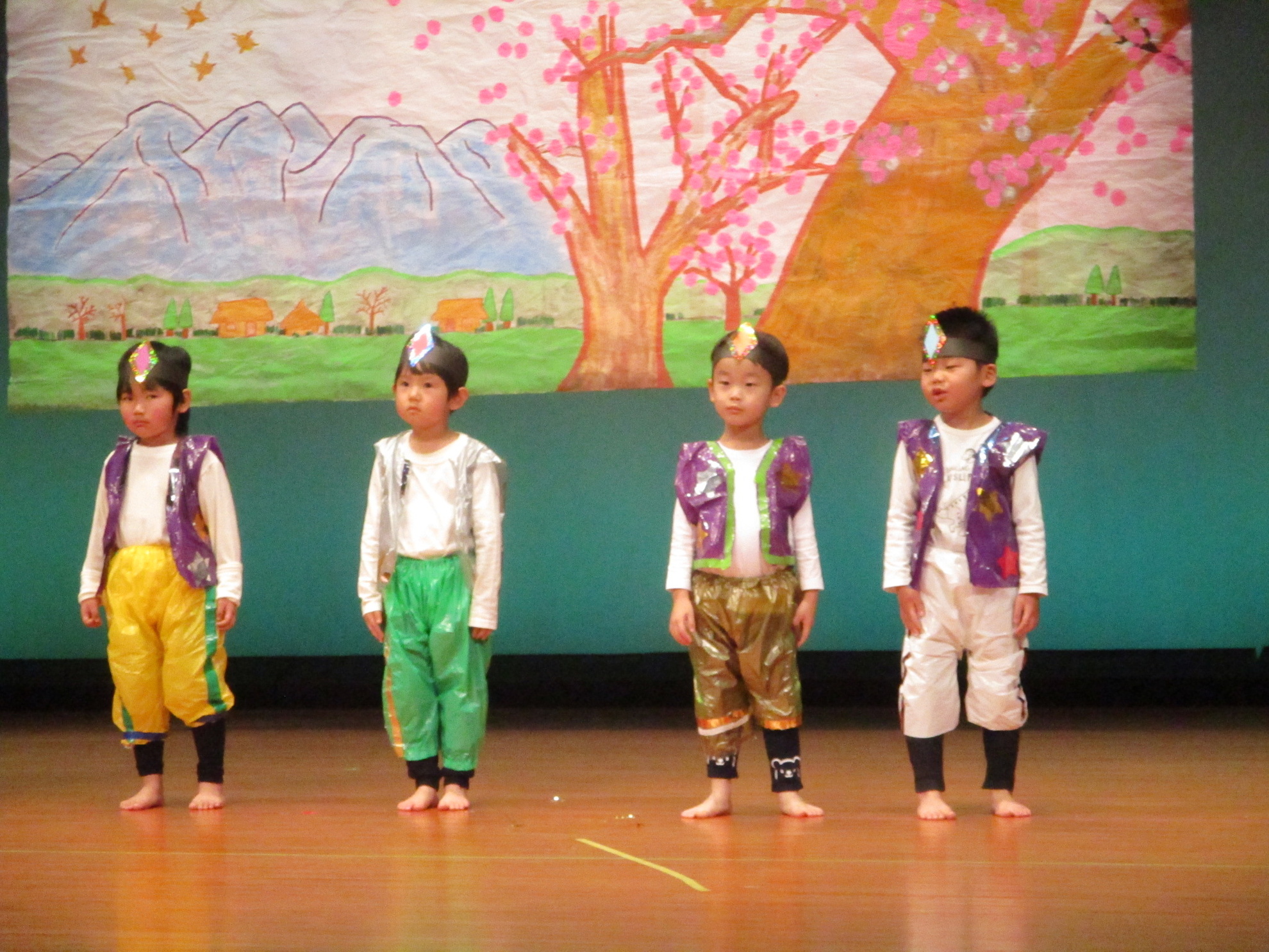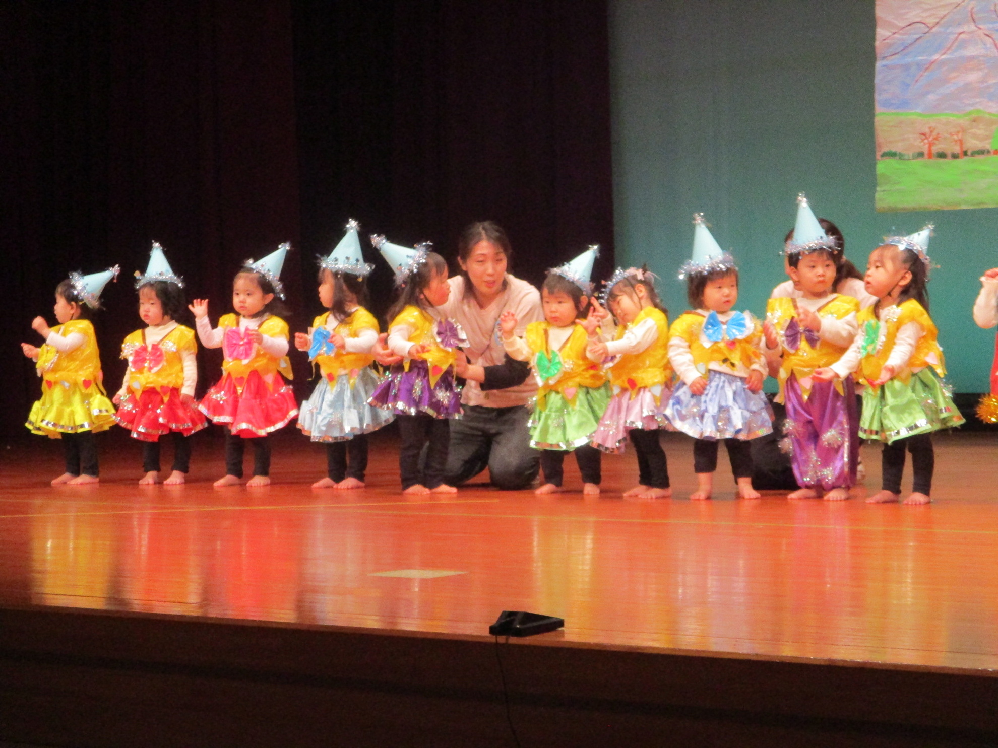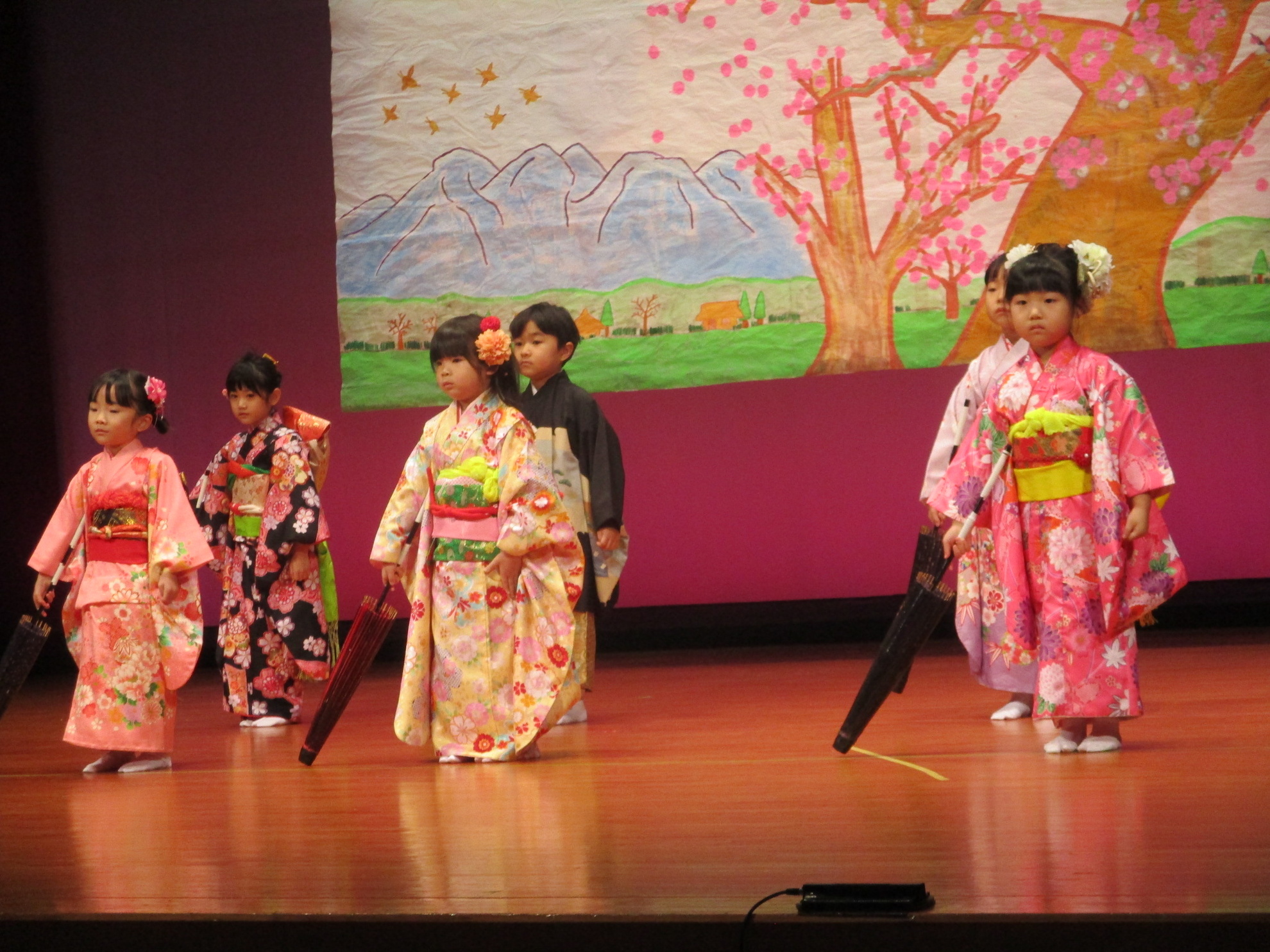 生活発表会がありました。 生活発表会には、沢山の応援や声援をありがとうございました。年齢に応じた発表で、子どもたちがそれぞれ頑張っていましたね。 今から生活発表会を始めます。 男子の着物姿もいいでしょ! しなやかな、足と手さばきが素敵です。 一番小さいクラスのお友だちも、舞台で頑張りました。可愛かったですね。 リトミックの先生とがんばりました。 十二支のお話は、どの子も素敵でしたね。 さくら、ふじぐみの合唱と合奏が最高に素敵で、キラキラ輝いていましたね。 瀬克発表会に沢山の応援や声援で子どもたちは無事に終える終えることができました。ありがとうございました。 カテゴリー: 投稿日:2026年01月13日 次へ