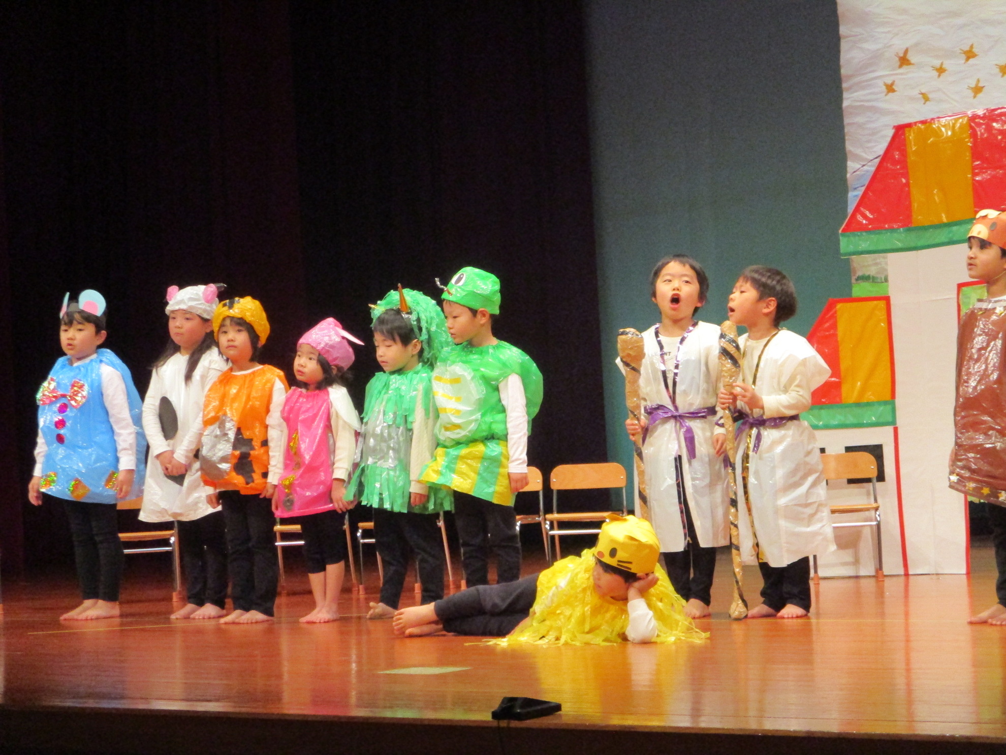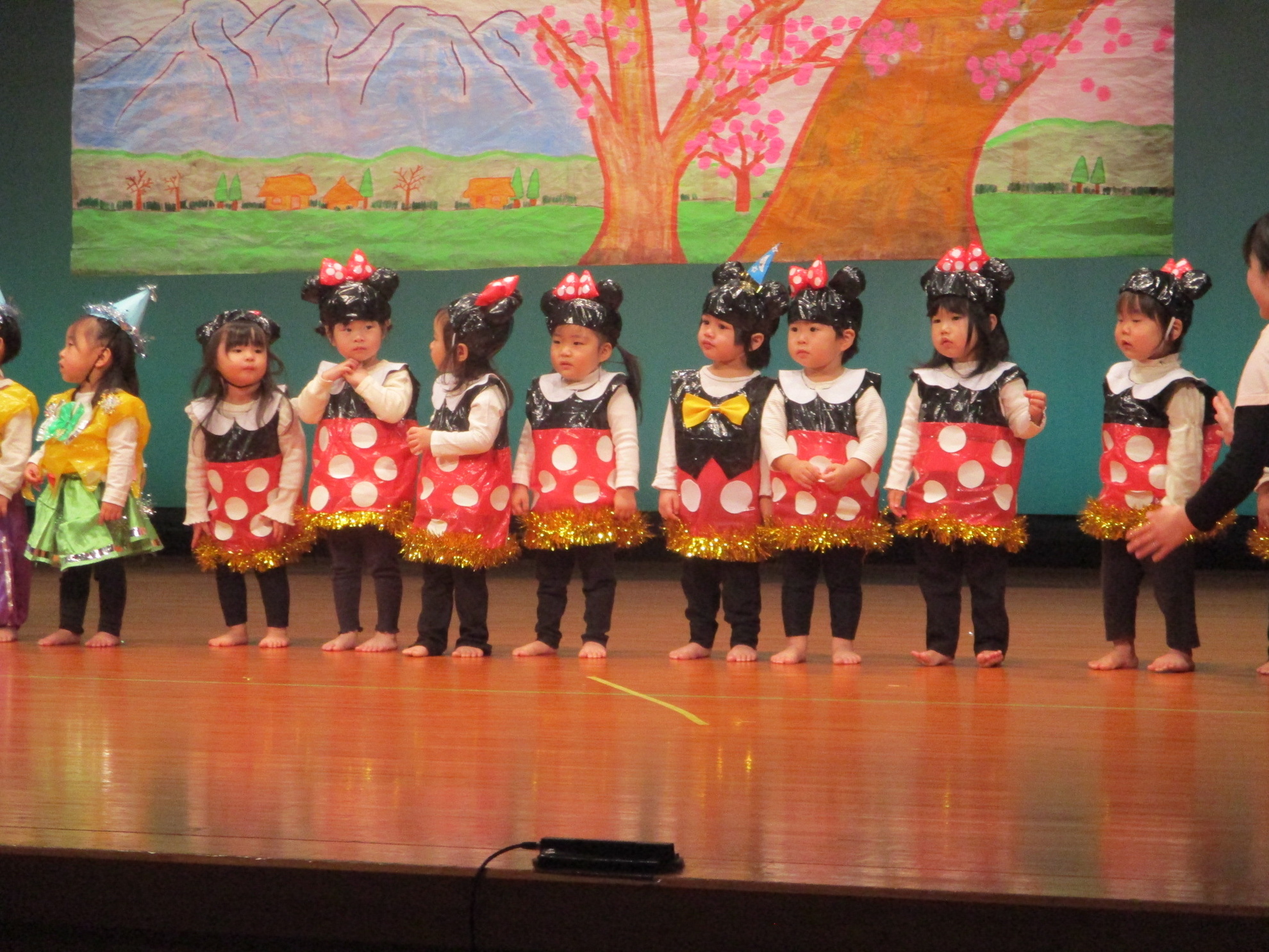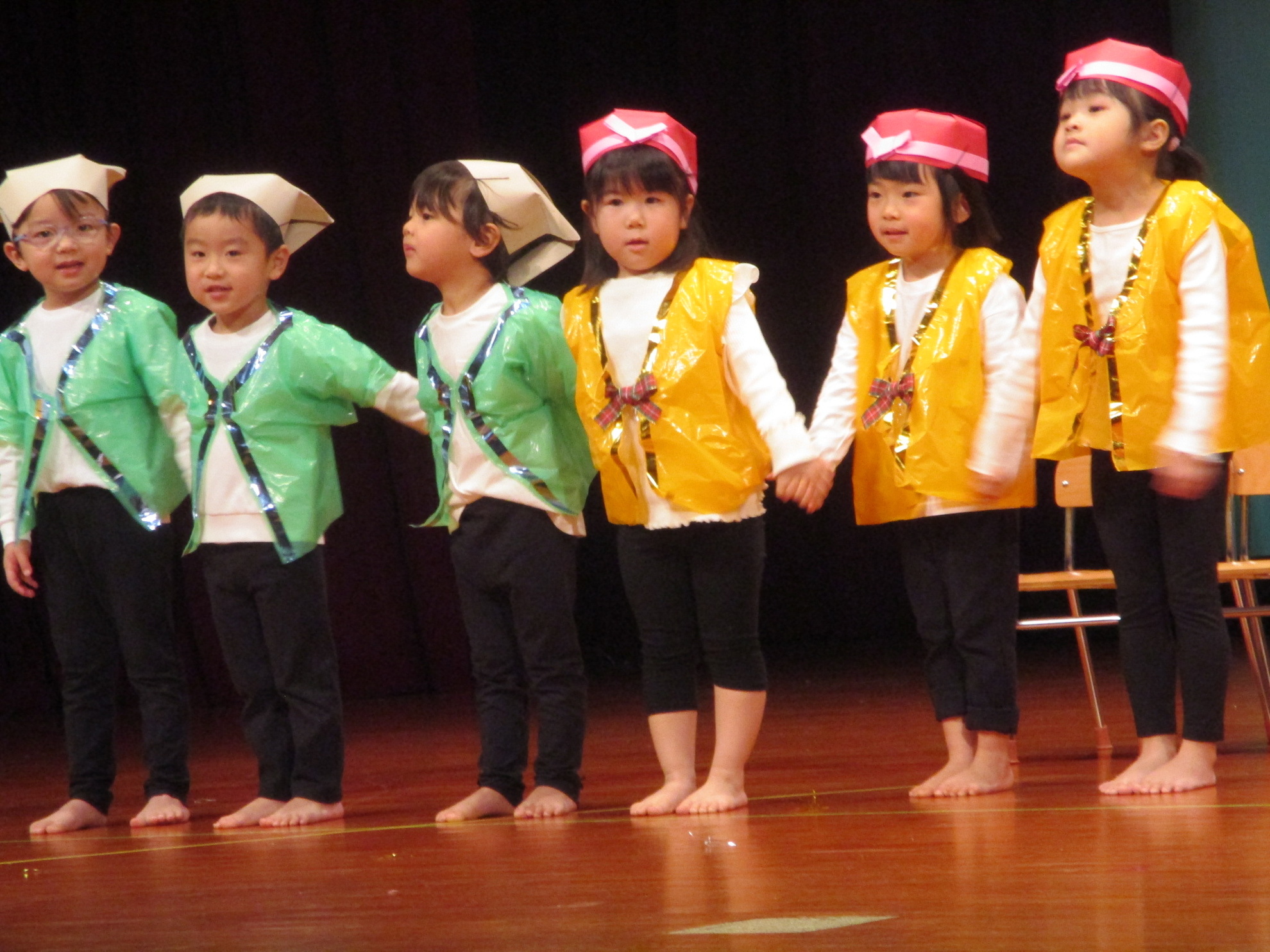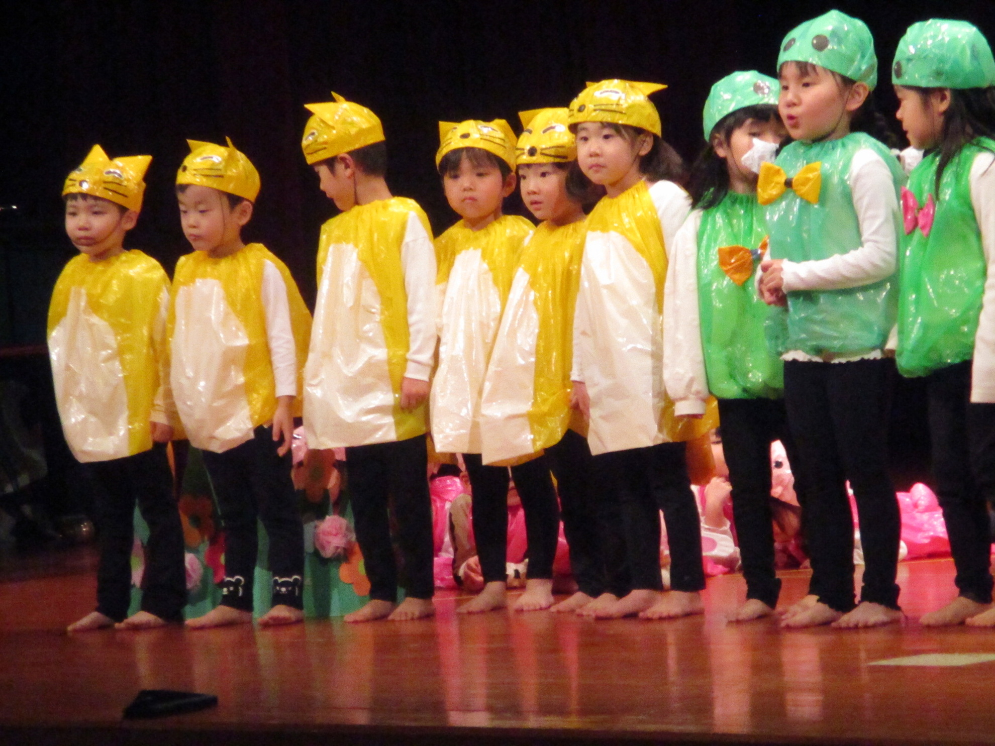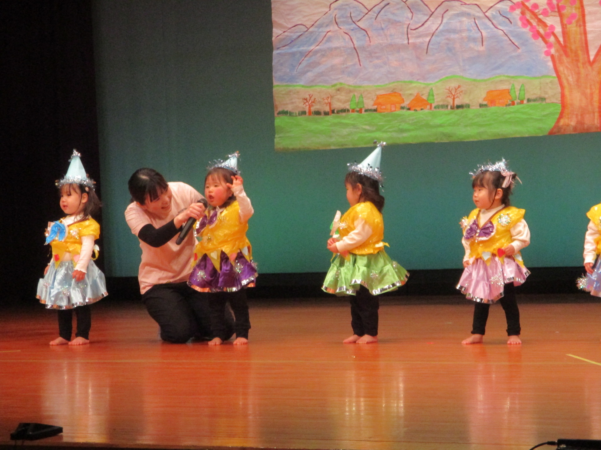 生活発表会がありました。 生活発表会には、沢山の応援や声援をありがとうございました。年齢に応じた発表で、子どもたちがそれぞれ頑張っていましたね。 今から生活発表会を始めます。 男子の着物姿もいいでしょ! しなやかな、足と手さばきが素敵です。 一番小さいクラスのお友だちも、舞台で頑張りました。可愛かったですね。 リトミックの先生とがんばりました。 十二支のお話は、どの子も素敵でしたね。 さくら、ふじぐみの合唱と合奏が最高に素敵で、キラキラ輝いていましたね。 瀬克発表会に沢山の応援や声援で子どもたちは無事に終える終えることができました。ありがとうございました。 カテゴリー: 投稿日:2026年01月13日 次へ