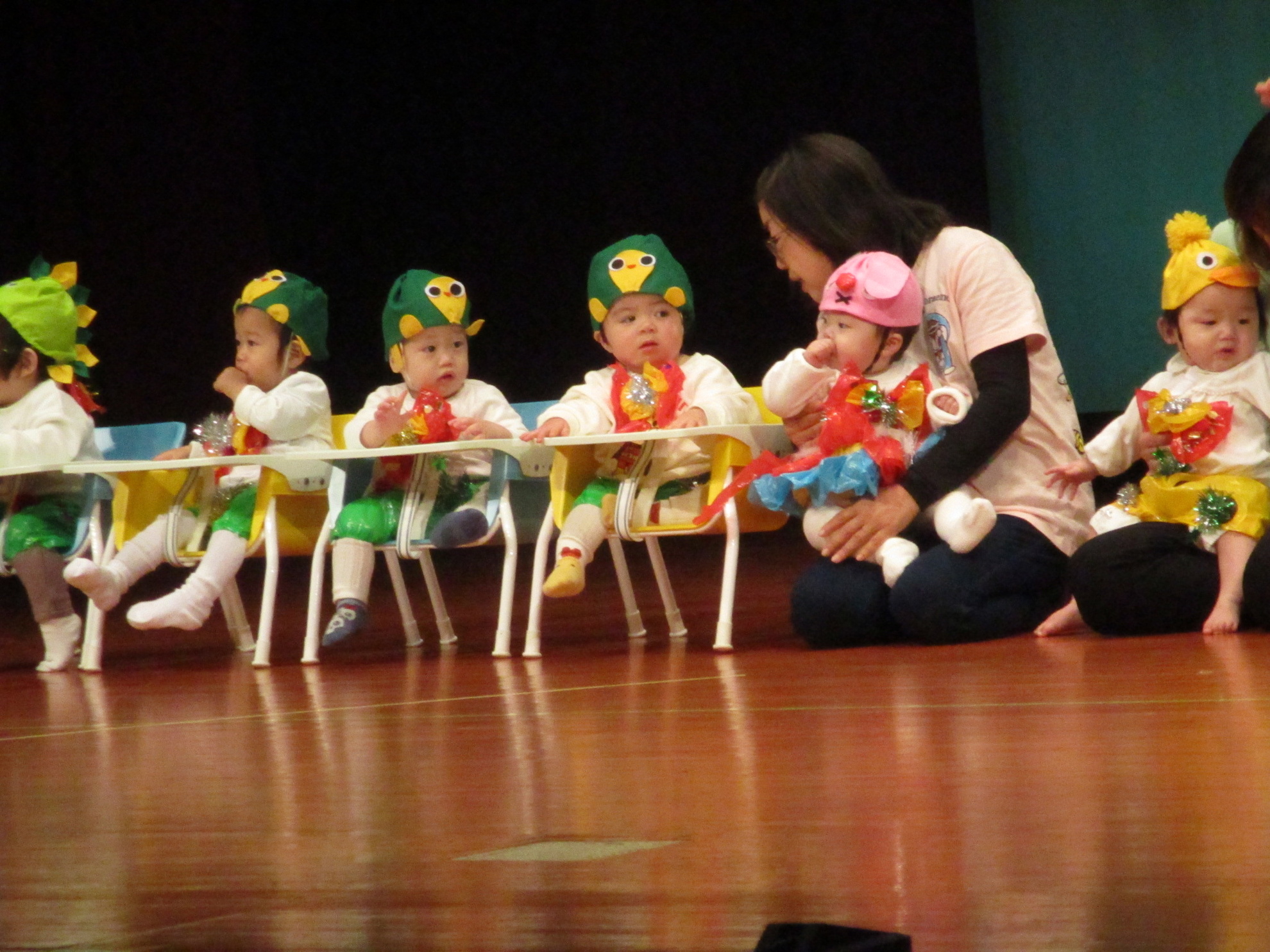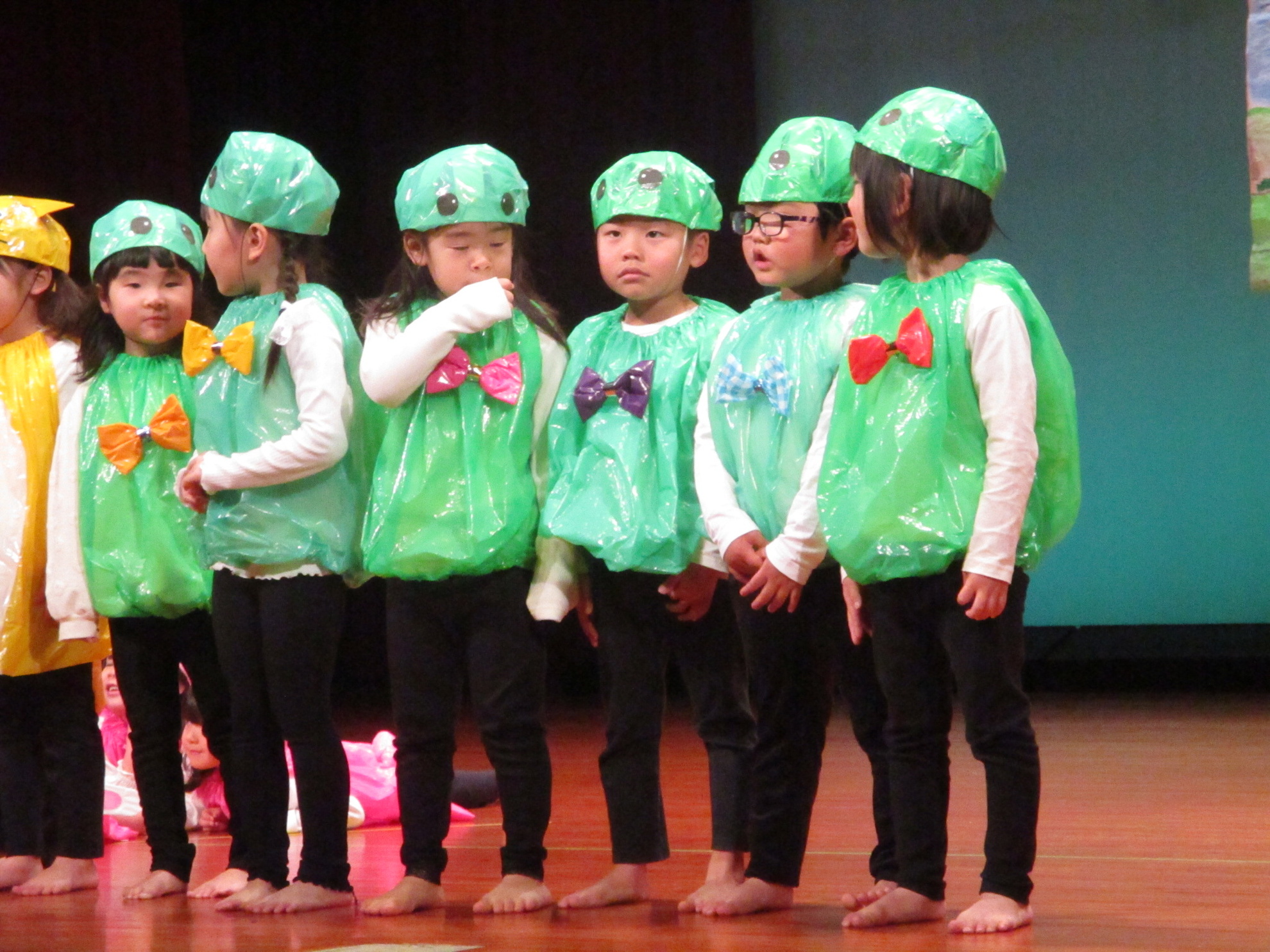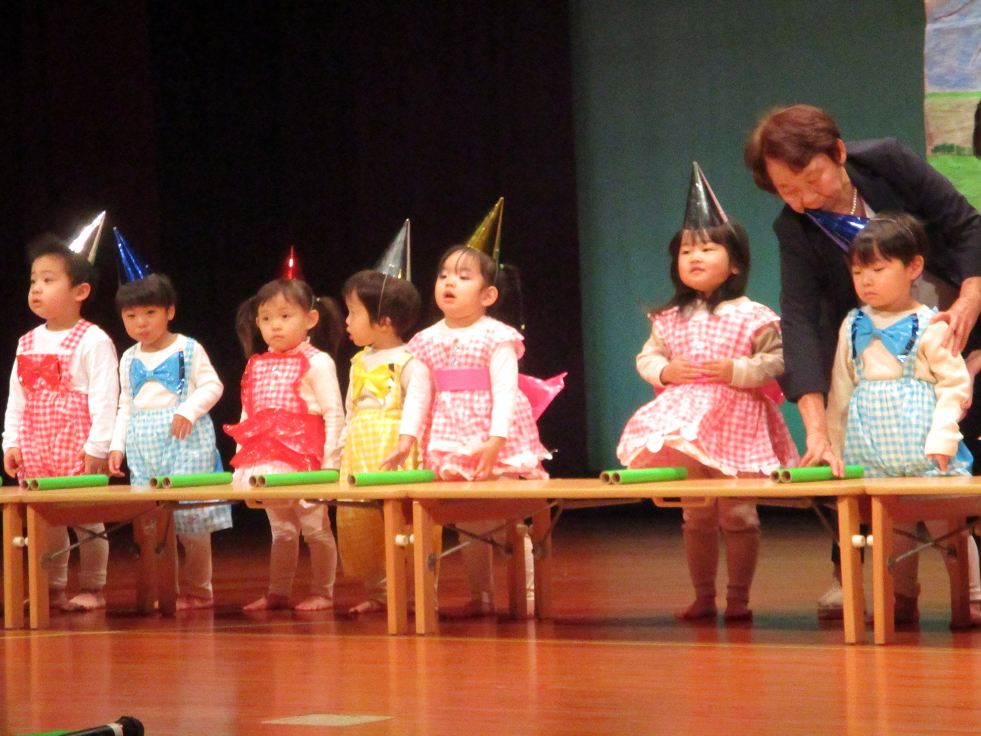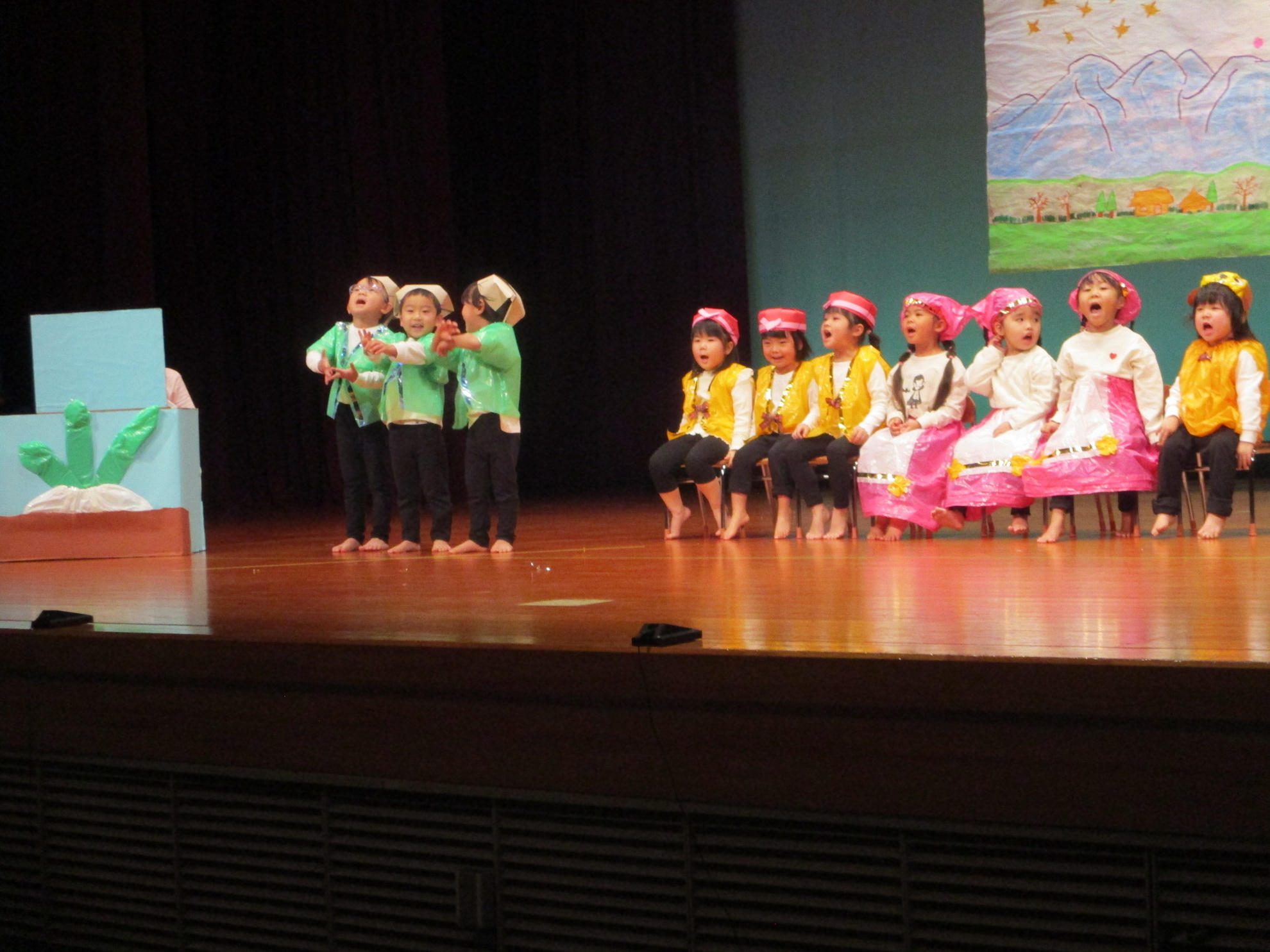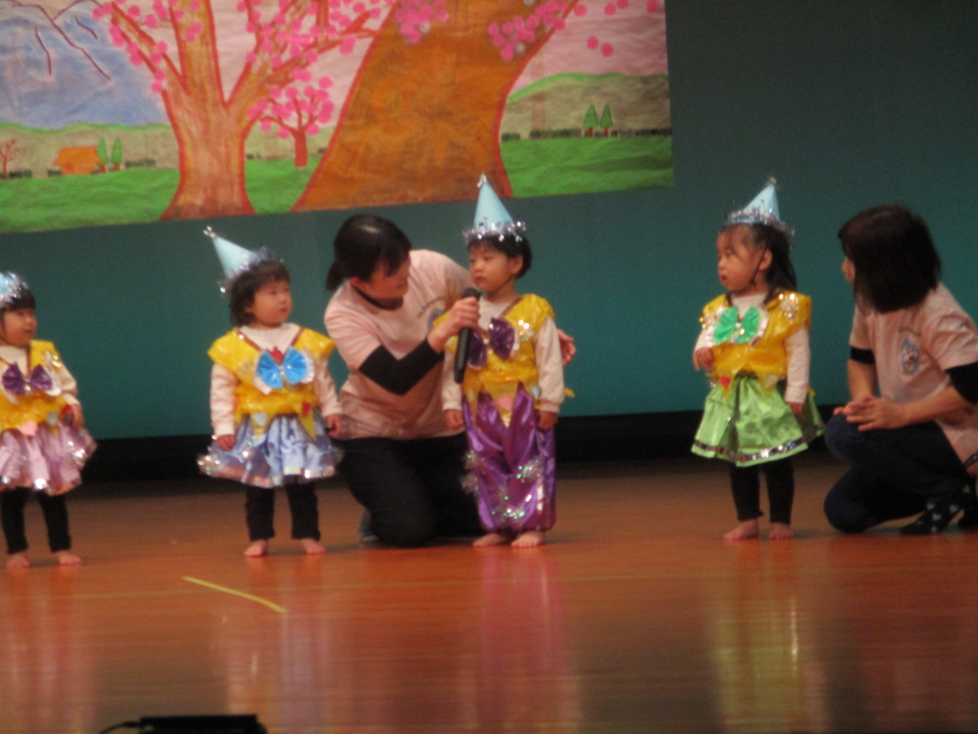 生活発表会がありました。 生活発表会には、沢山の応援や声援をありがとうございました。年齢に応じた発表で、子どもたちがそれぞれ頑張っていましたね。 今から生活発表会を始めます。 男子の着物姿もいいでしょ! しなやかな、足と手さばきが素敵です。 一番小さいクラスのお友だちも、舞台で頑張りました。可愛かったですね。 リトミックの先生とがんばりました。 十二支のお話は、どの子も素敵でしたね。 さくら、ふじぐみの合唱と合奏が最高に素敵で、キラキラ輝いていましたね。 瀬克発表会に沢山の応援や声援で子どもたちは無事に終える終えることができました。ありがとうございました。 カテゴリー: 投稿日:2026年01月13日 次へ