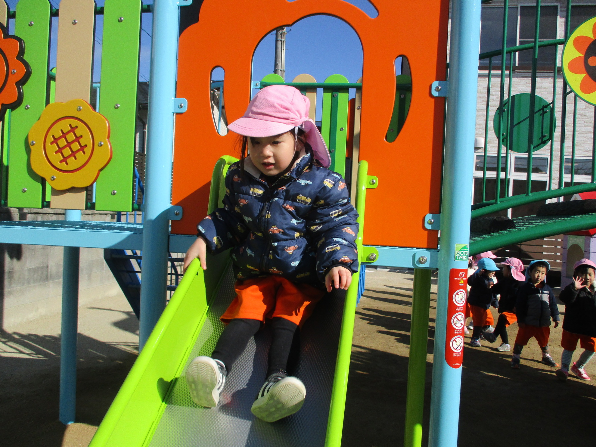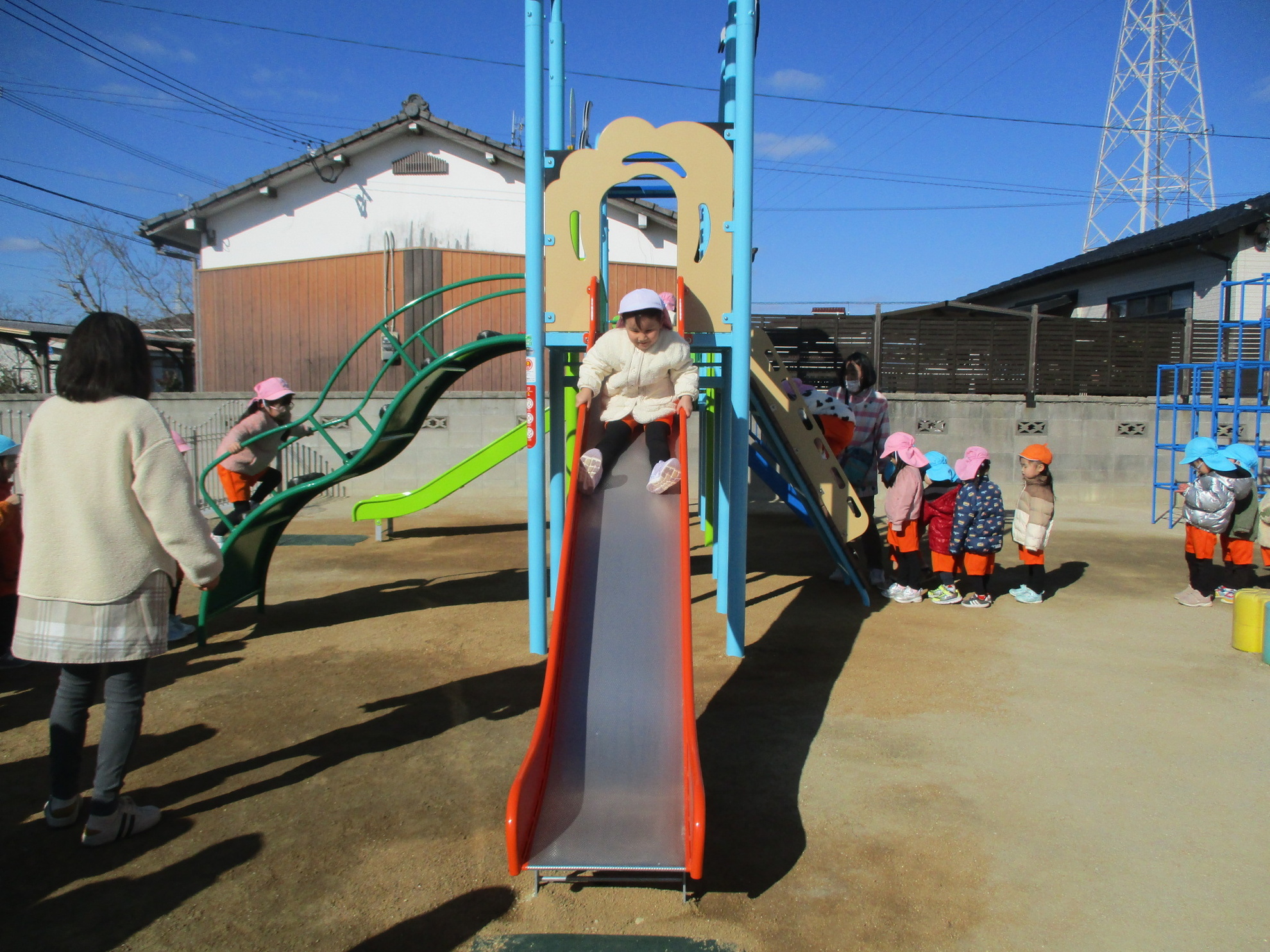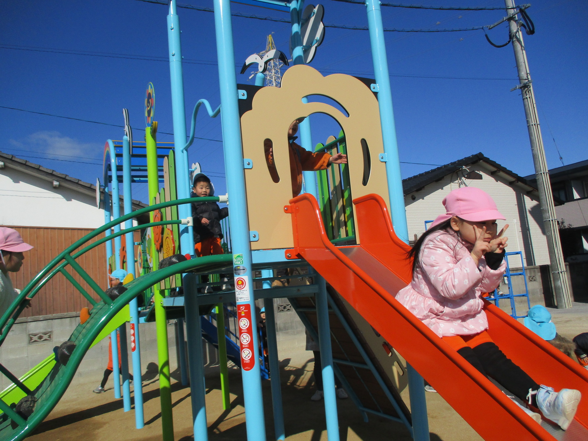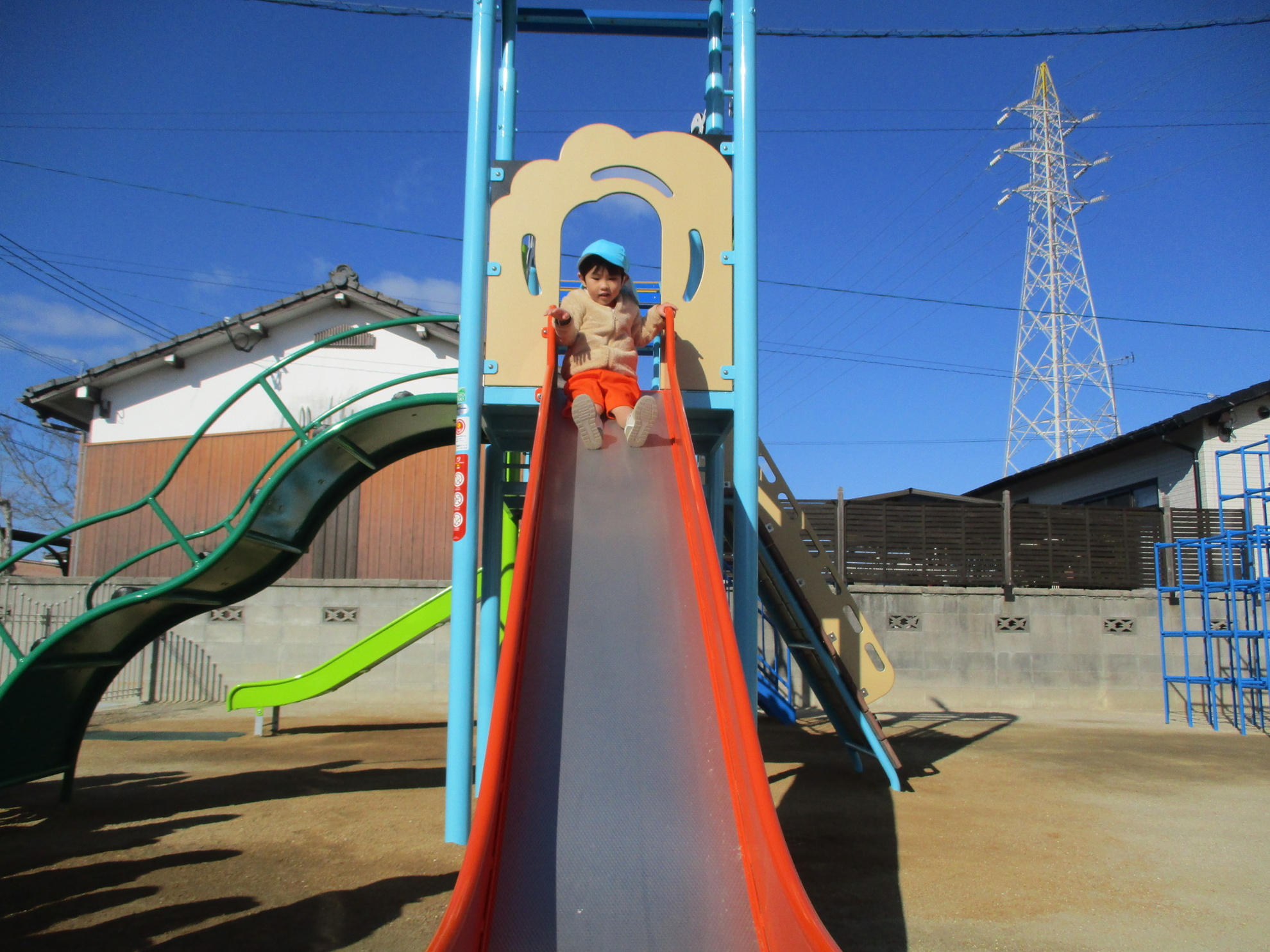 新しい遊具が完成しました 楽しみにしていた大きな遊具が完成して 遊べるようになりました! やった~!ばんざい! 園長先生と遊具で遊ぶときのお約束をして 早速遊びましょう♪ 大きな滑り台…ドキドキ… 順番に登ろうね。 やっほ~~! 上るのも滑るのも上手☆ 新しい遊具楽しいね! これからたくさん遊ぼうね(^^)☆ カテゴリー: 投稿日:2026年02月06日 次へ