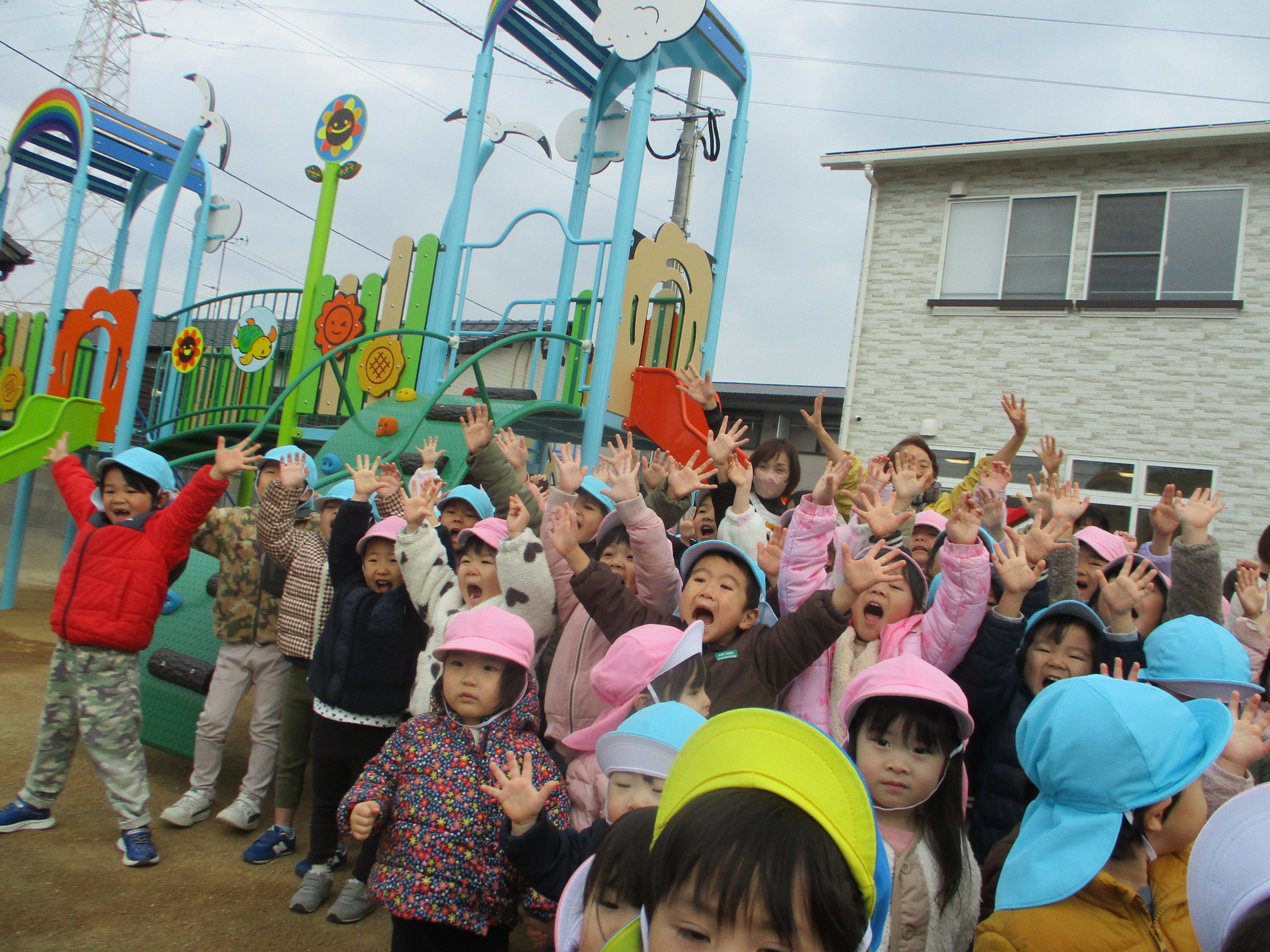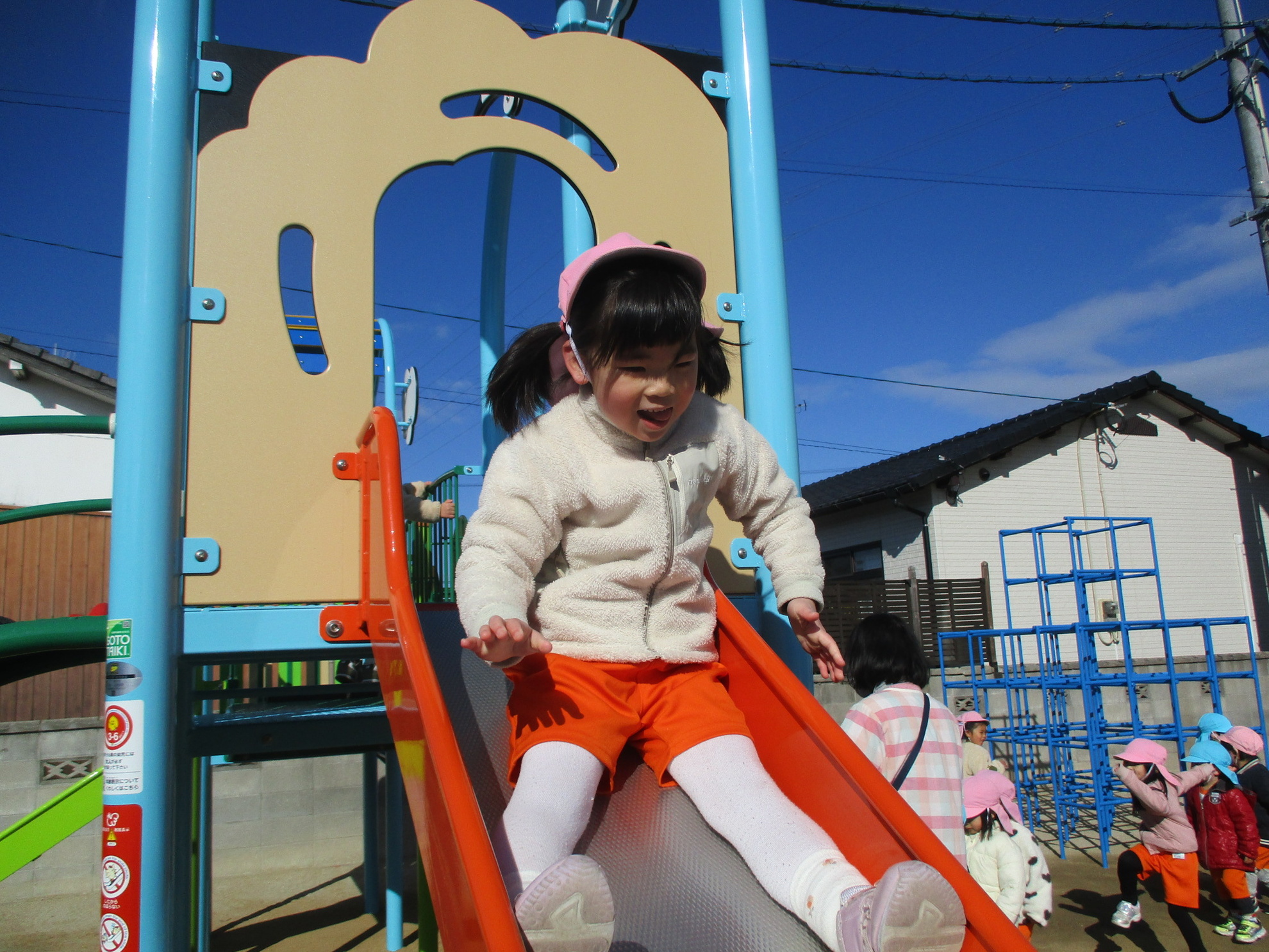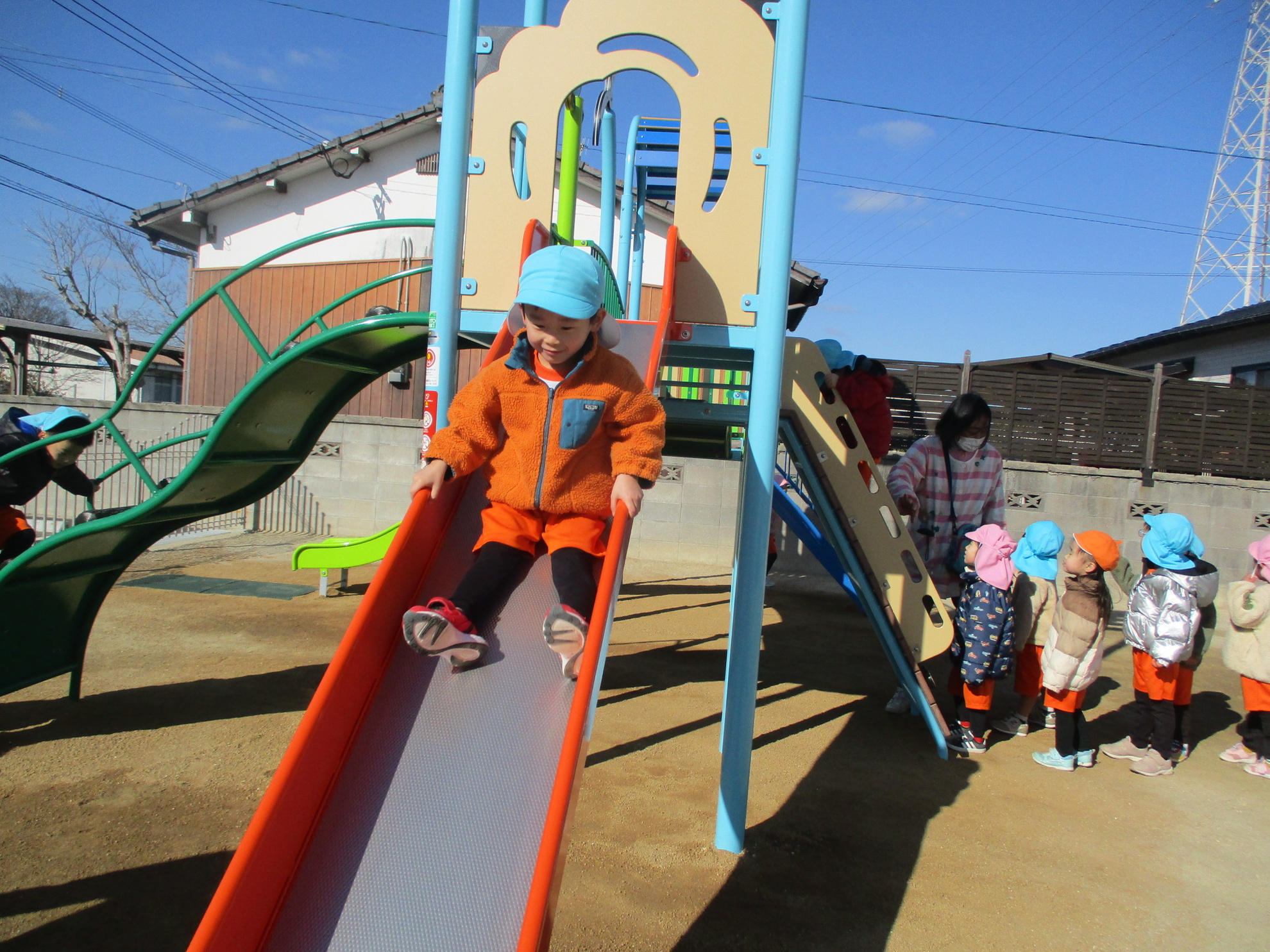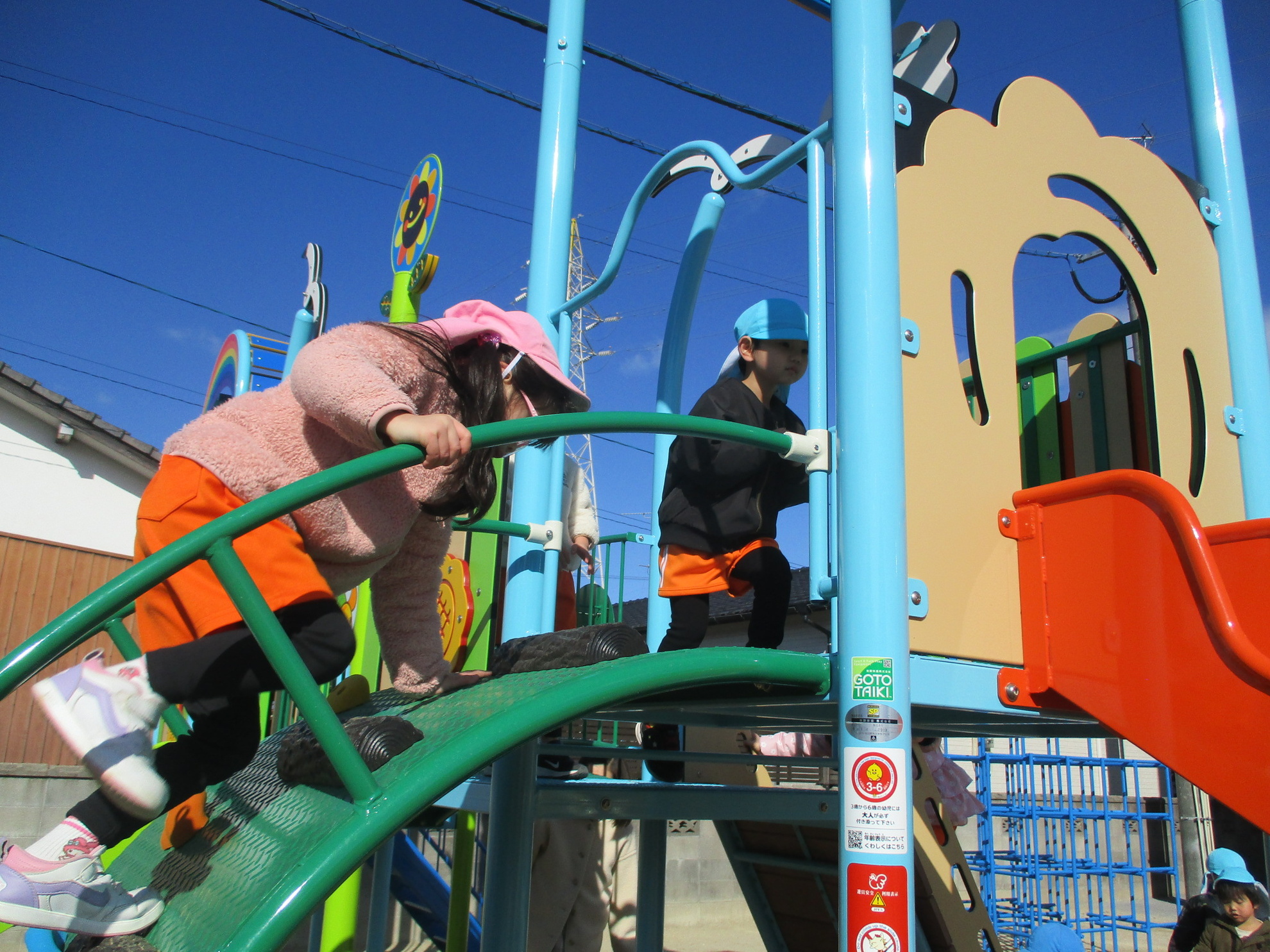 新しい遊具が完成しました 楽しみにしていた大きな遊具が完成して 遊べるようになりました! やった~!ばんざい! 園長先生と遊具で遊ぶときのお約束をして 早速遊びましょう♪ 大きな滑り台…ドキドキ… 順番に登ろうね。 やっほ~~! 上るのも滑るのも上手☆ 新しい遊具楽しいね! これからたくさん遊ぼうね(^^)☆ カテゴリー: 投稿日:2026年02月06日 次へ