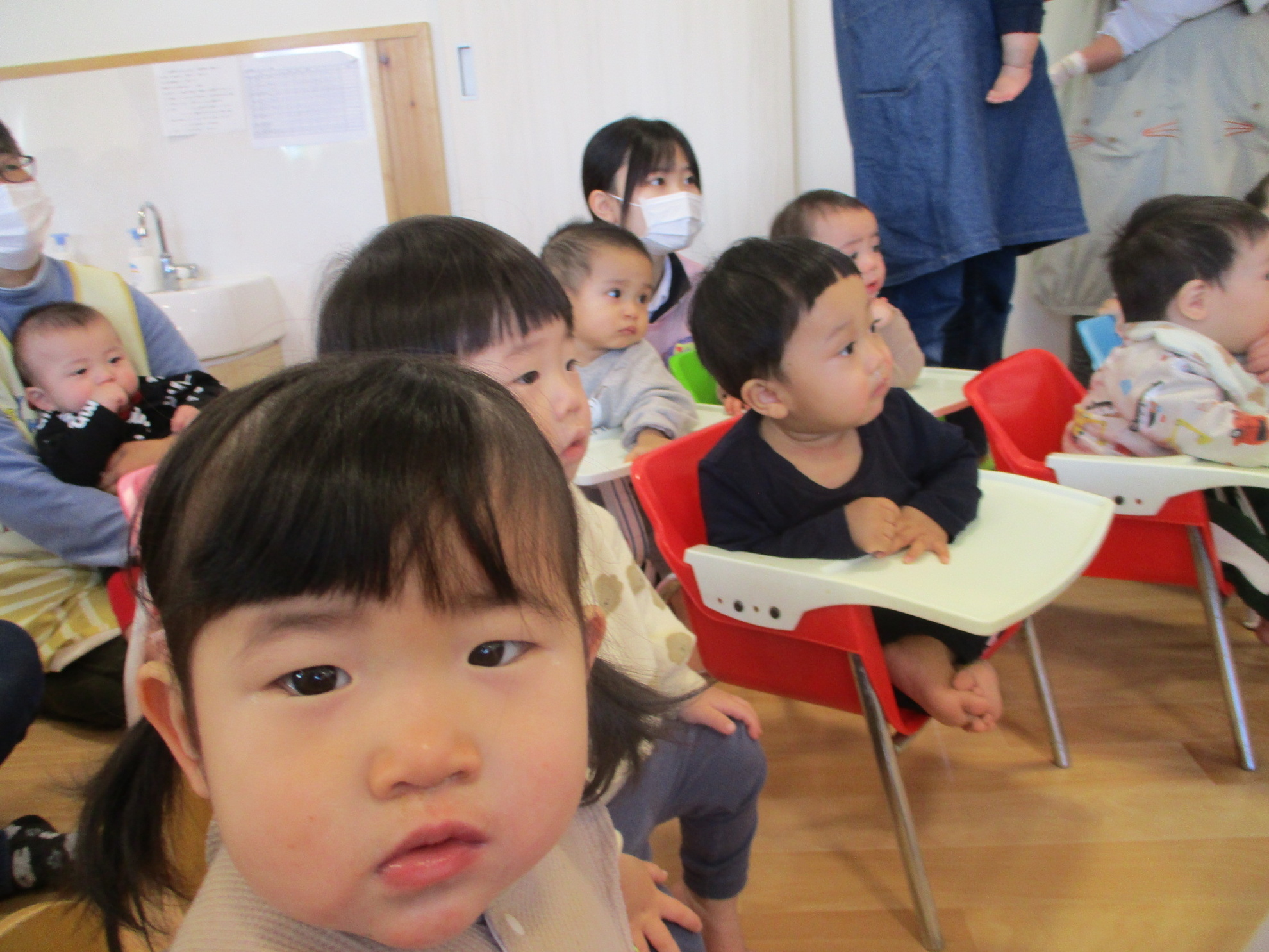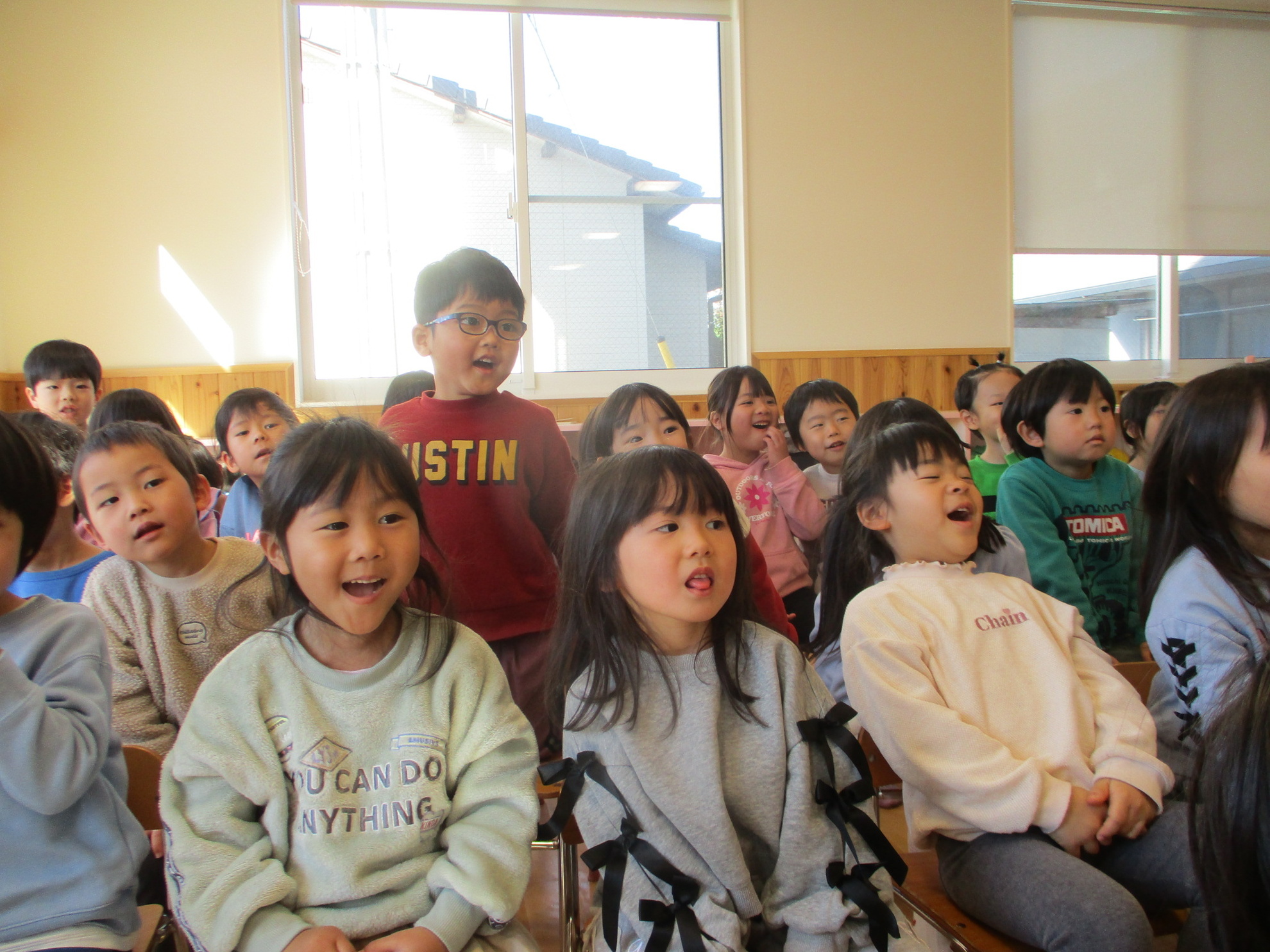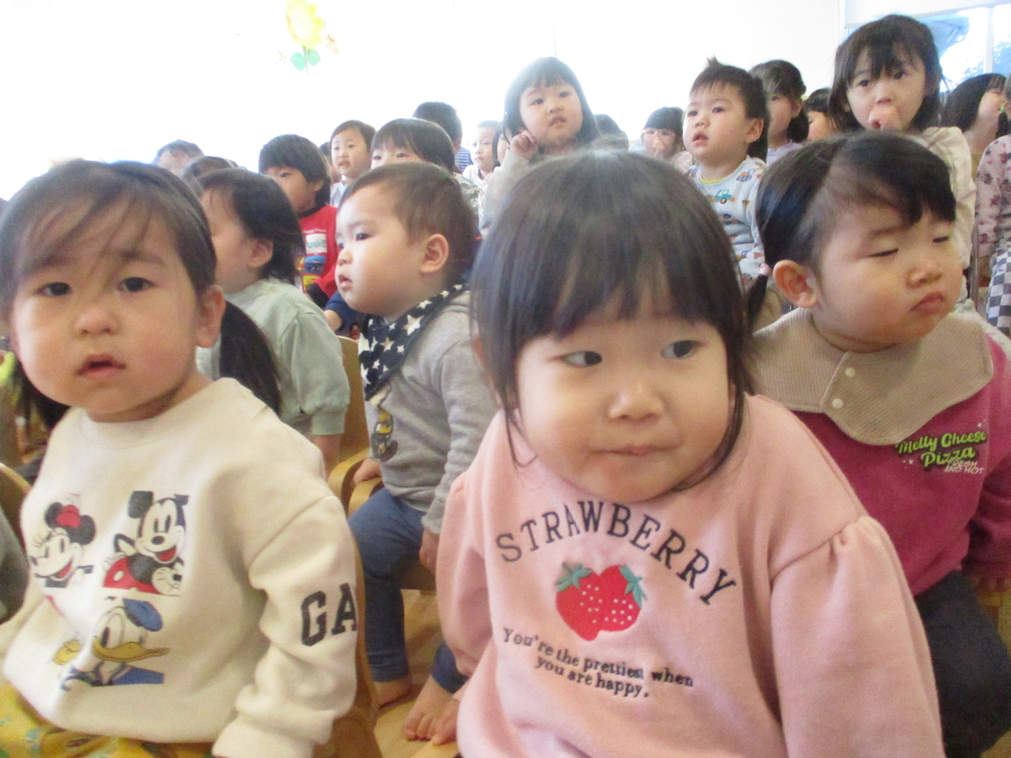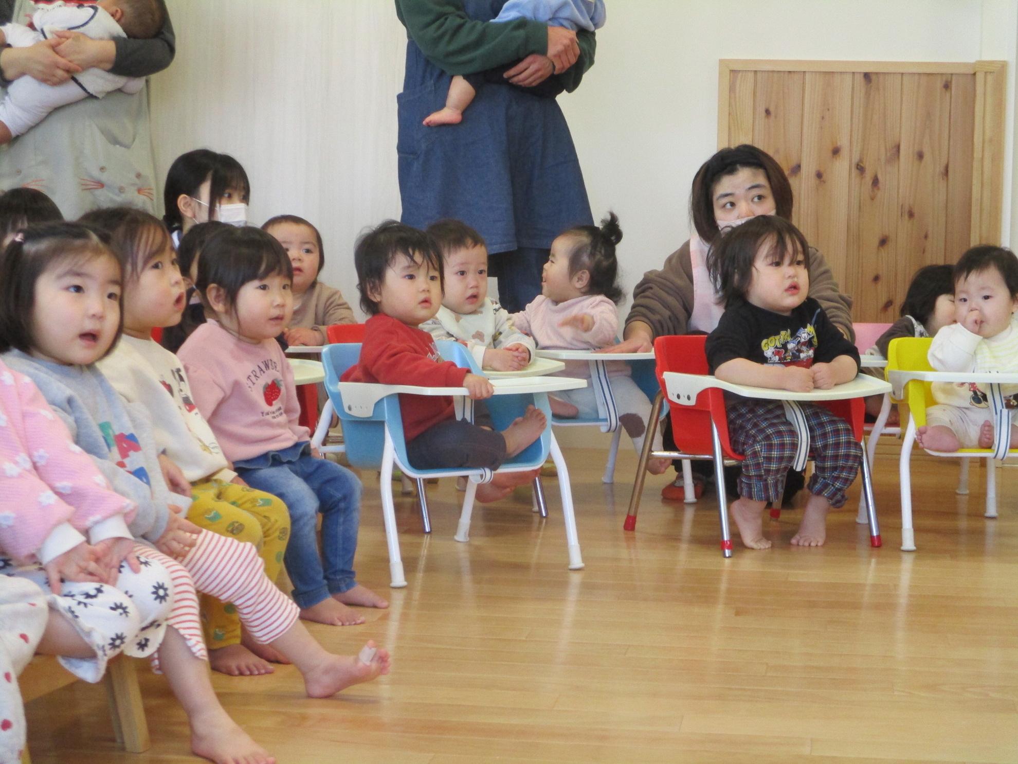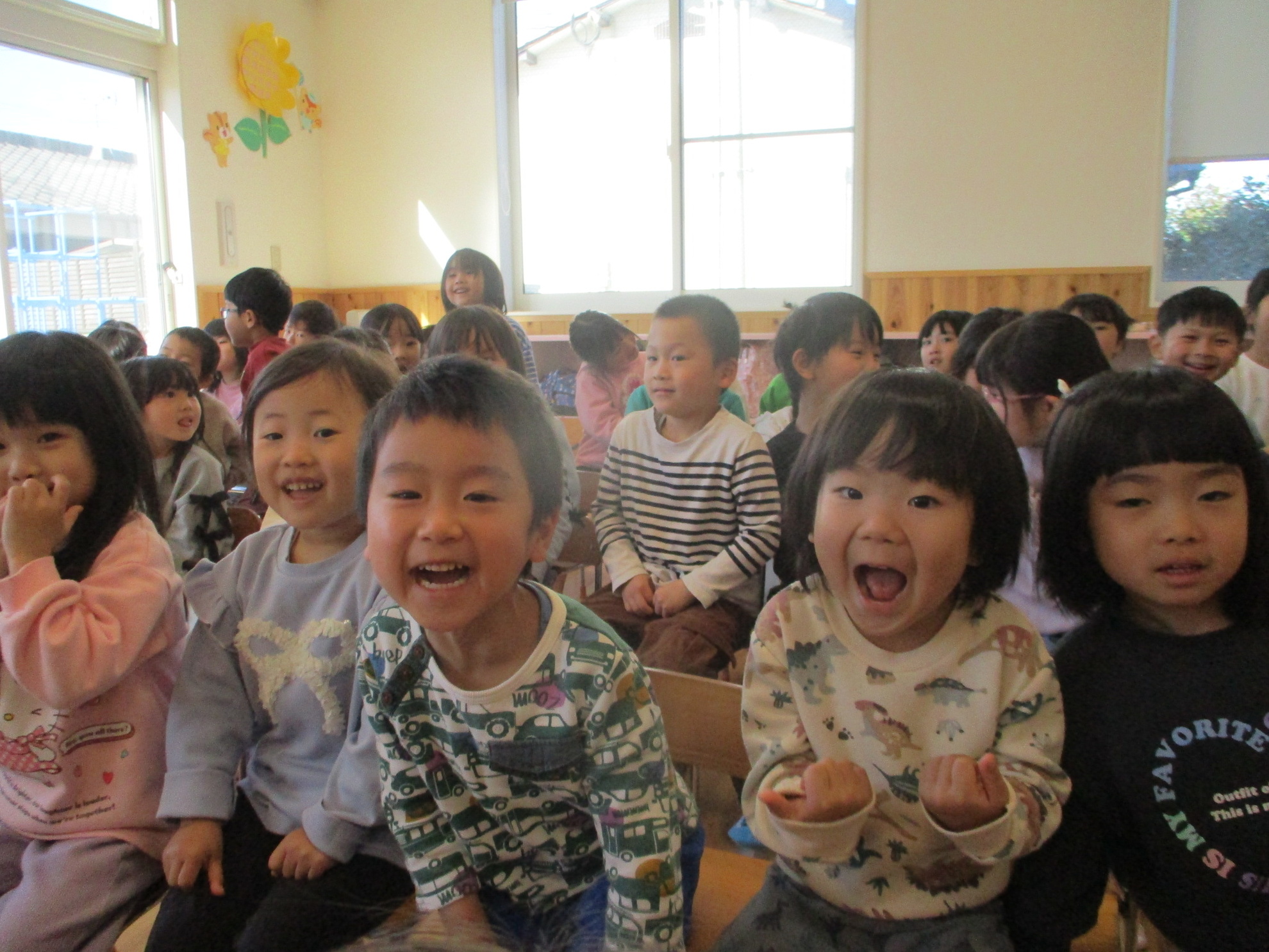 2月生まれの誕生日会を行いました。 2月生まれのお友だちです! お誕生日おめでとう! みんなで誕生日の歌を歌って お祝いをしました。 そのあとは、手品を見てびっくり!! 興味津々で見ています みんなで魔法をかけたら、 お誕生日ケーキがでてきたよ! おやつにケーキを食べようね(*^^*) カテゴリー: 投稿日:2026年02月18日 次へ