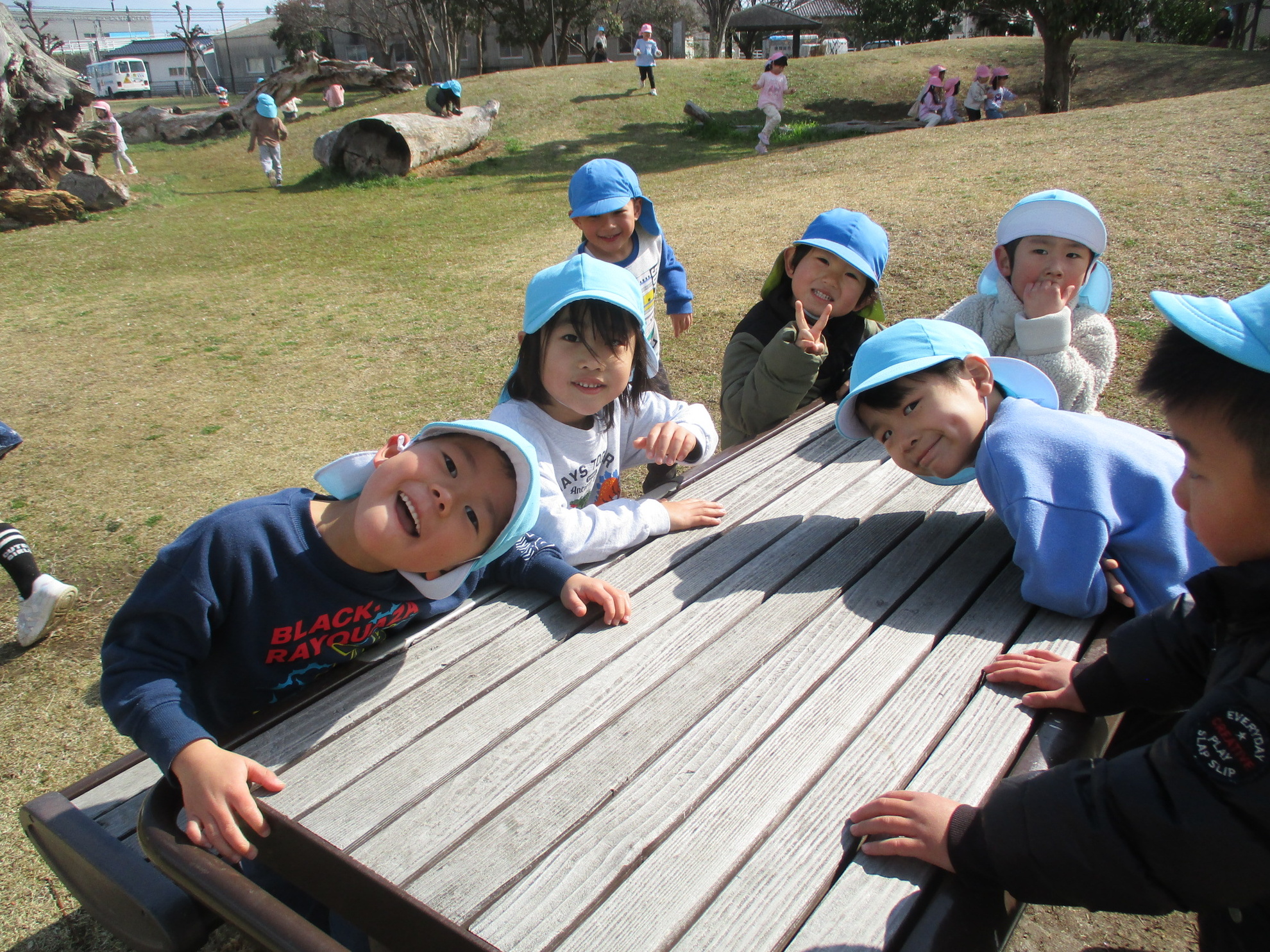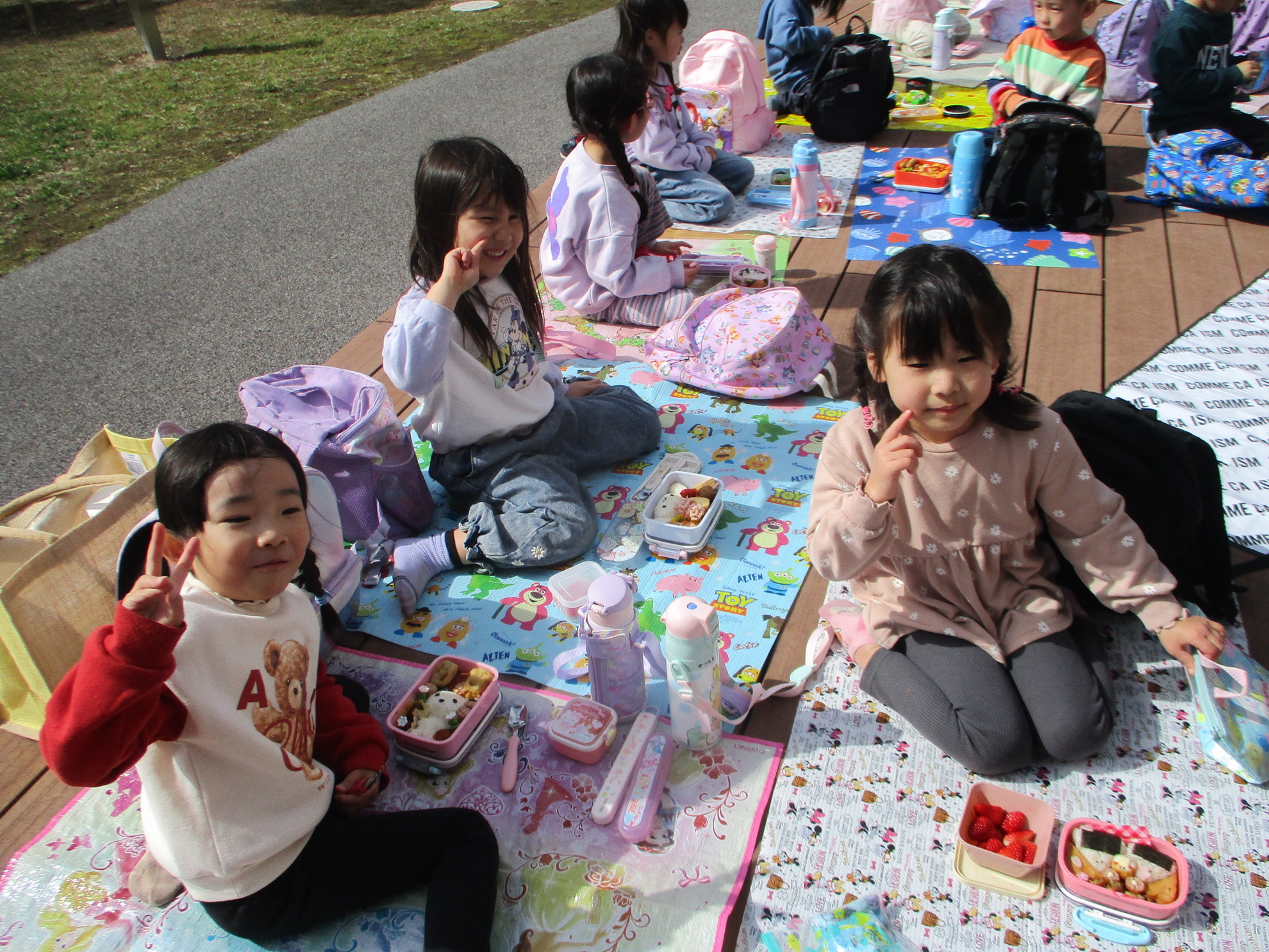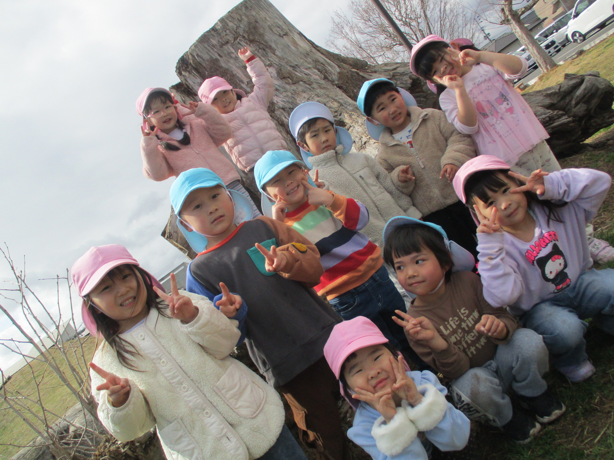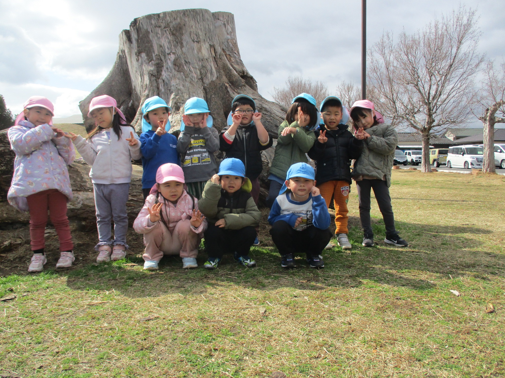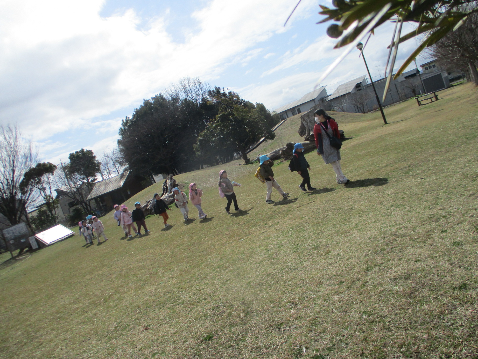 うめ、さくら、ふじぐみでお別れ遠足にでかけました。目的地まで元気に歩いたのは、さくら、ふじぐみです。うめぐみはバスに乗って行きました。天候にも恵まれ、元気一杯、公園内を満喫しました。楽しかった思い出話は、子どもたちに聞いてくださいね。