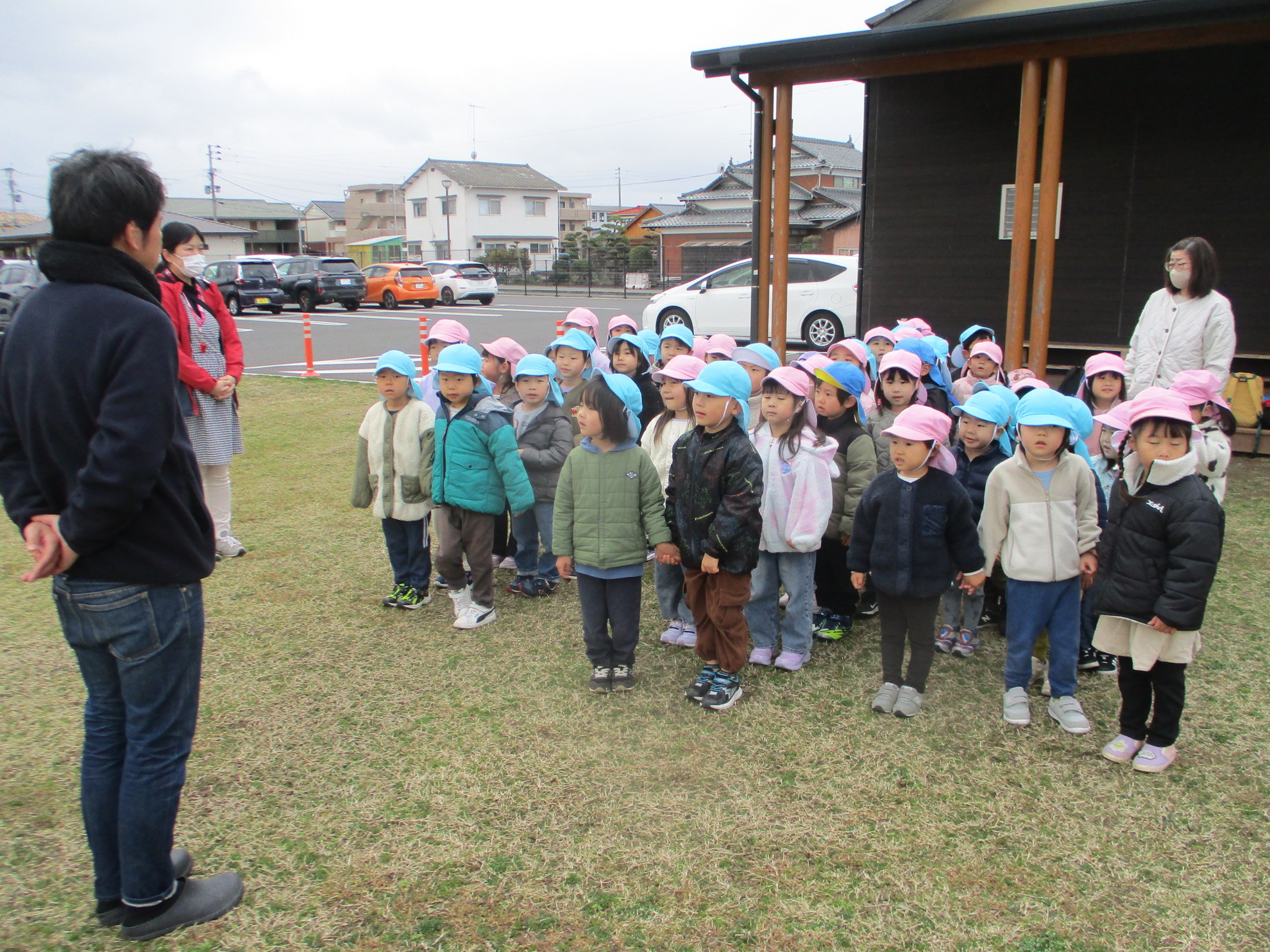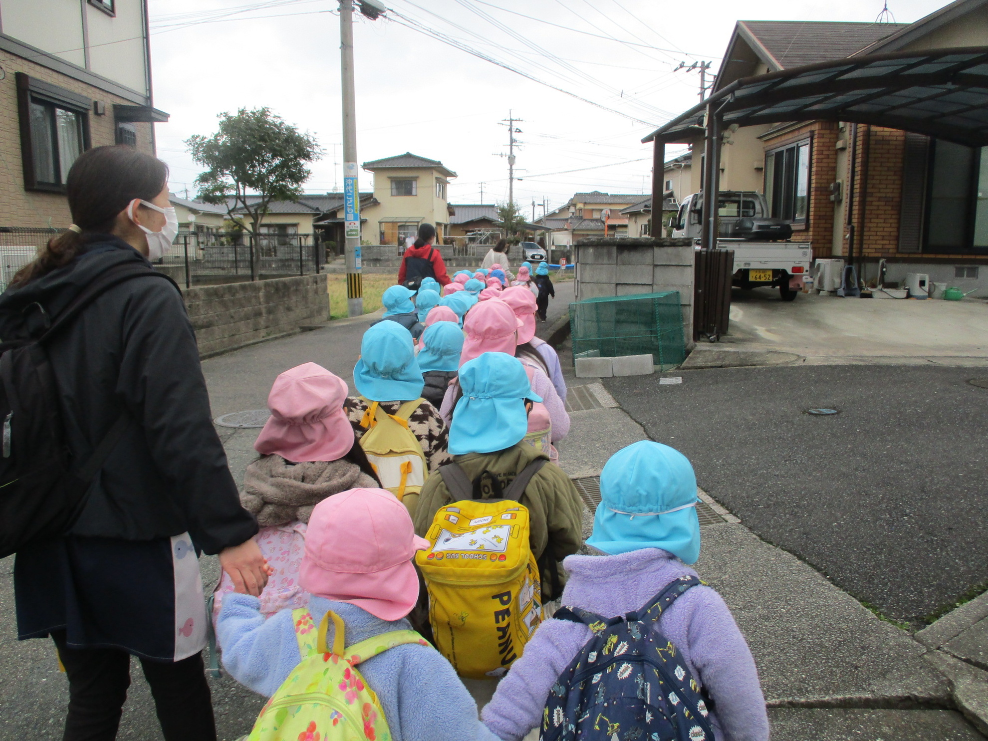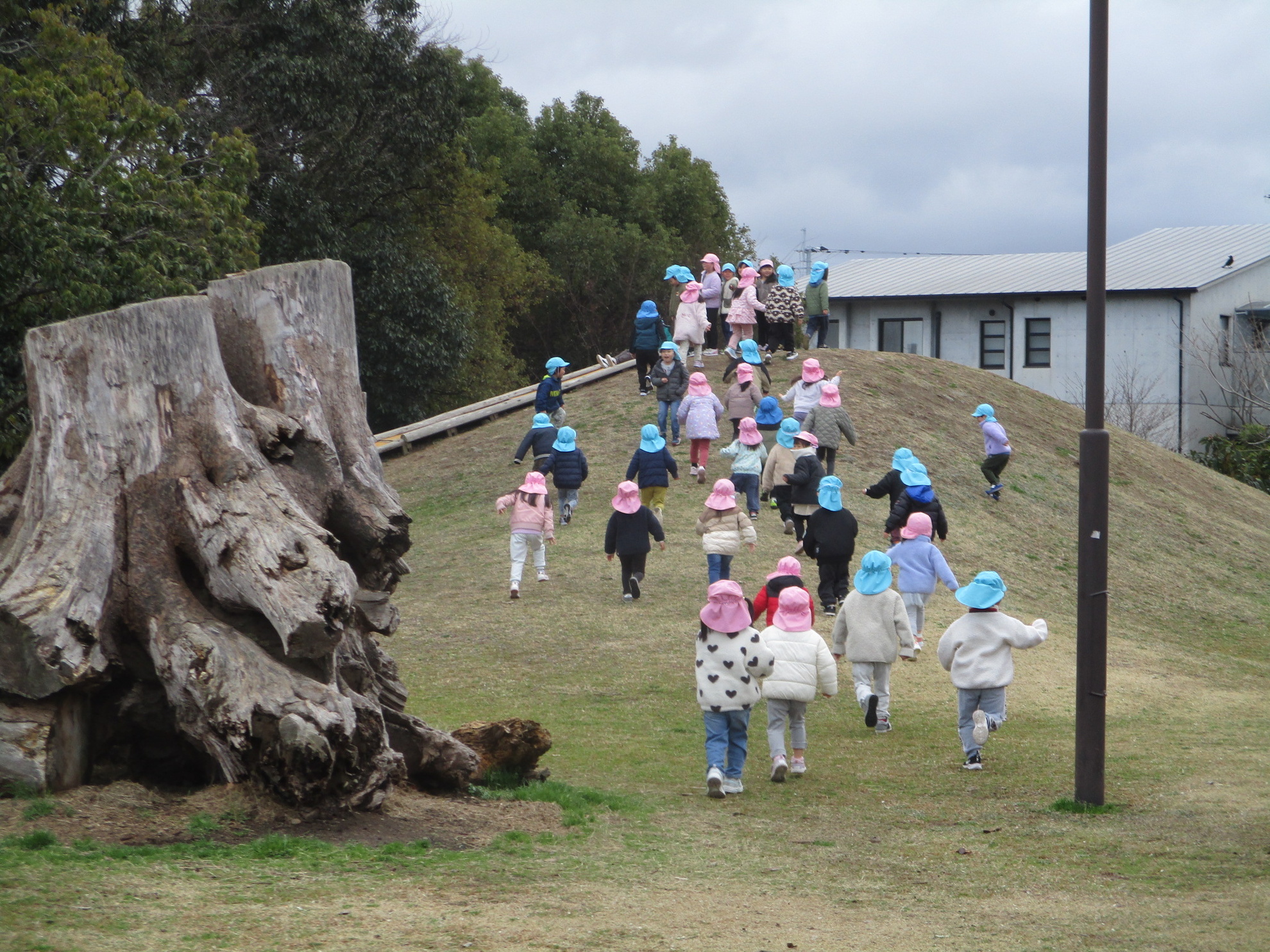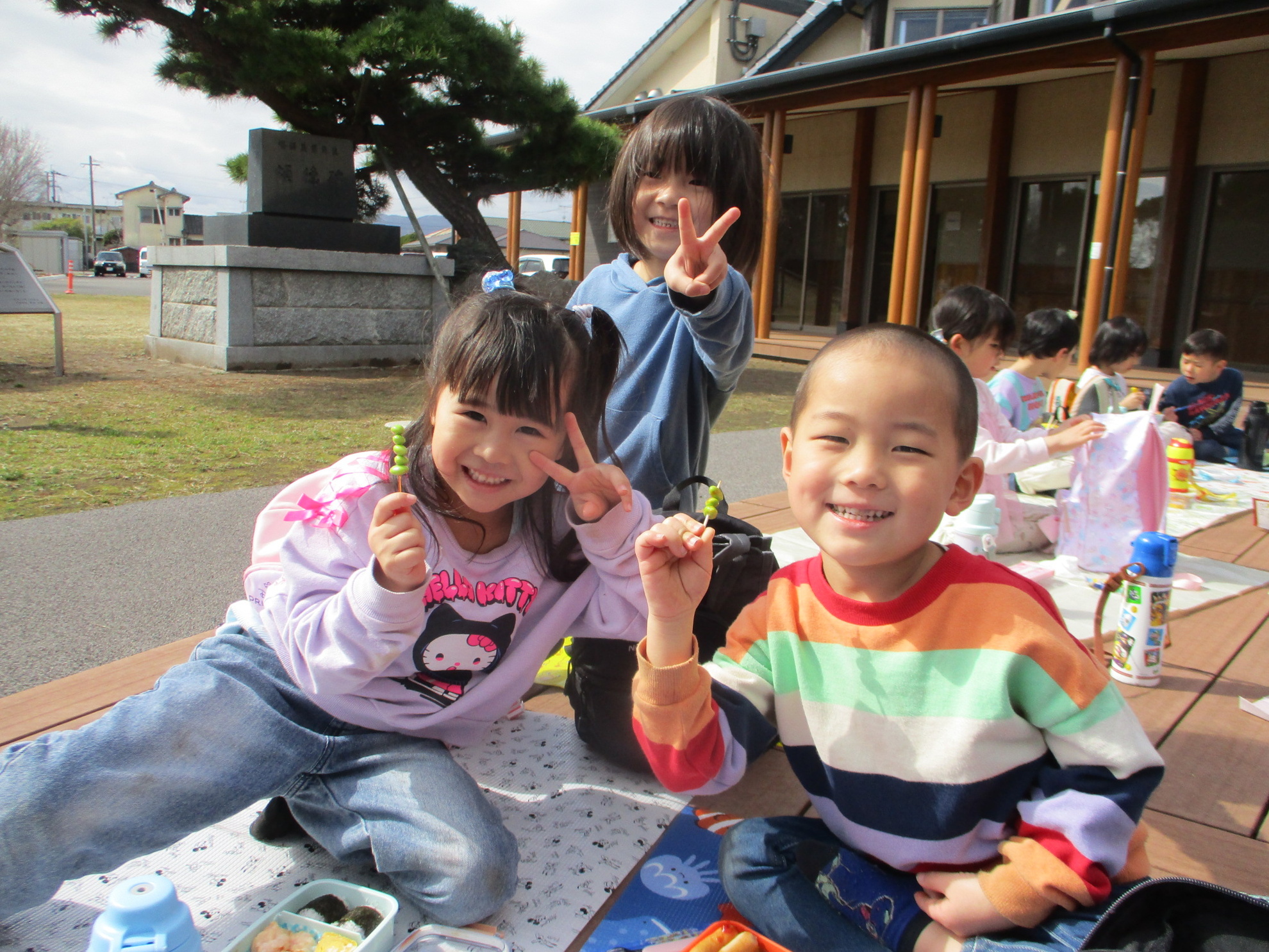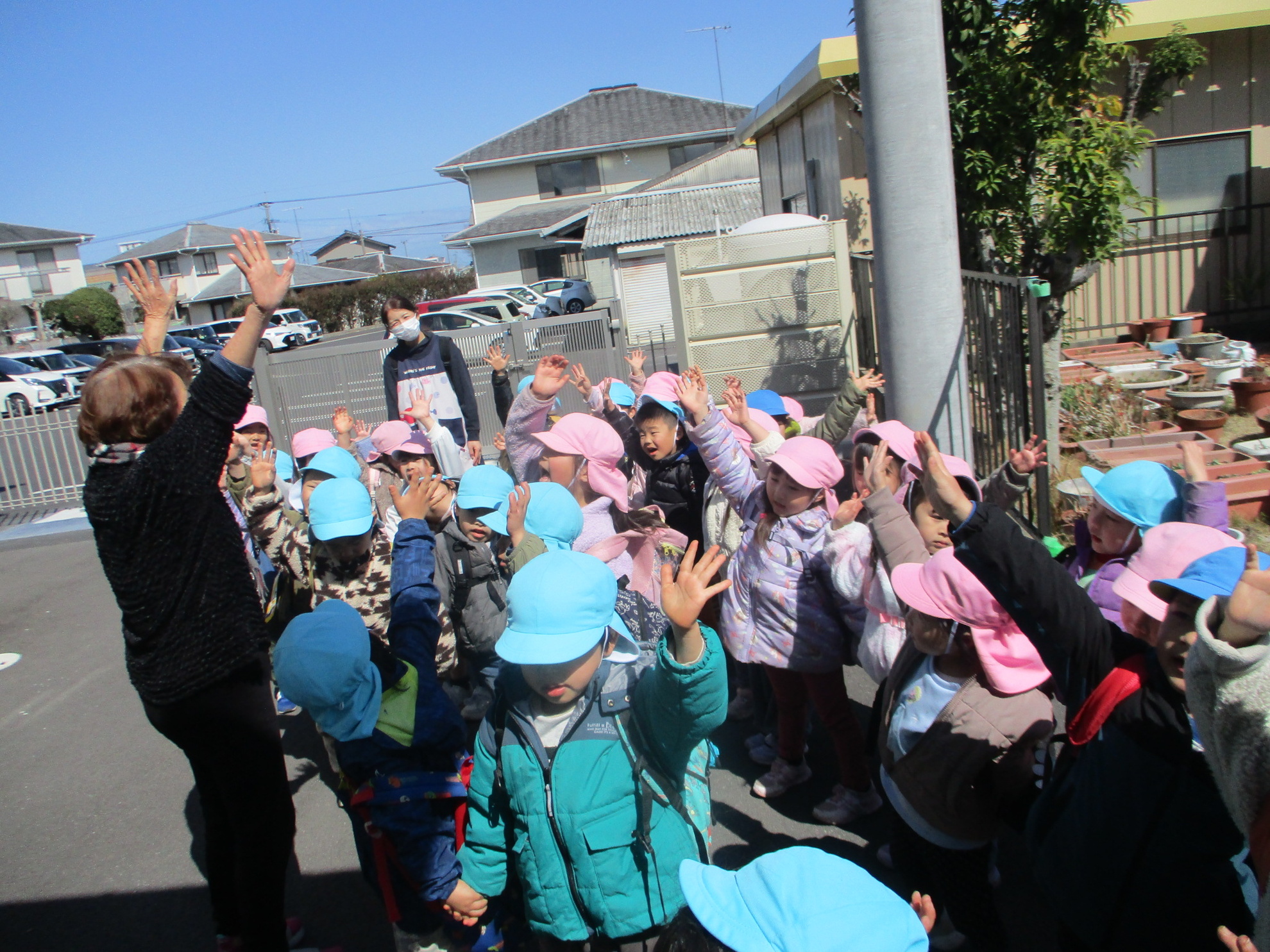 うめ、さくら、ふじぐみでお別れ遠足にでかけました。目的地まで元気に歩いたのは、さくら、ふじぐみです。うめぐみはバスに乗って行きました。天候にも恵まれ、元気一杯、公園内を満喫しました。楽しかった思い出話は、子どもたちに聞いてくださいね。