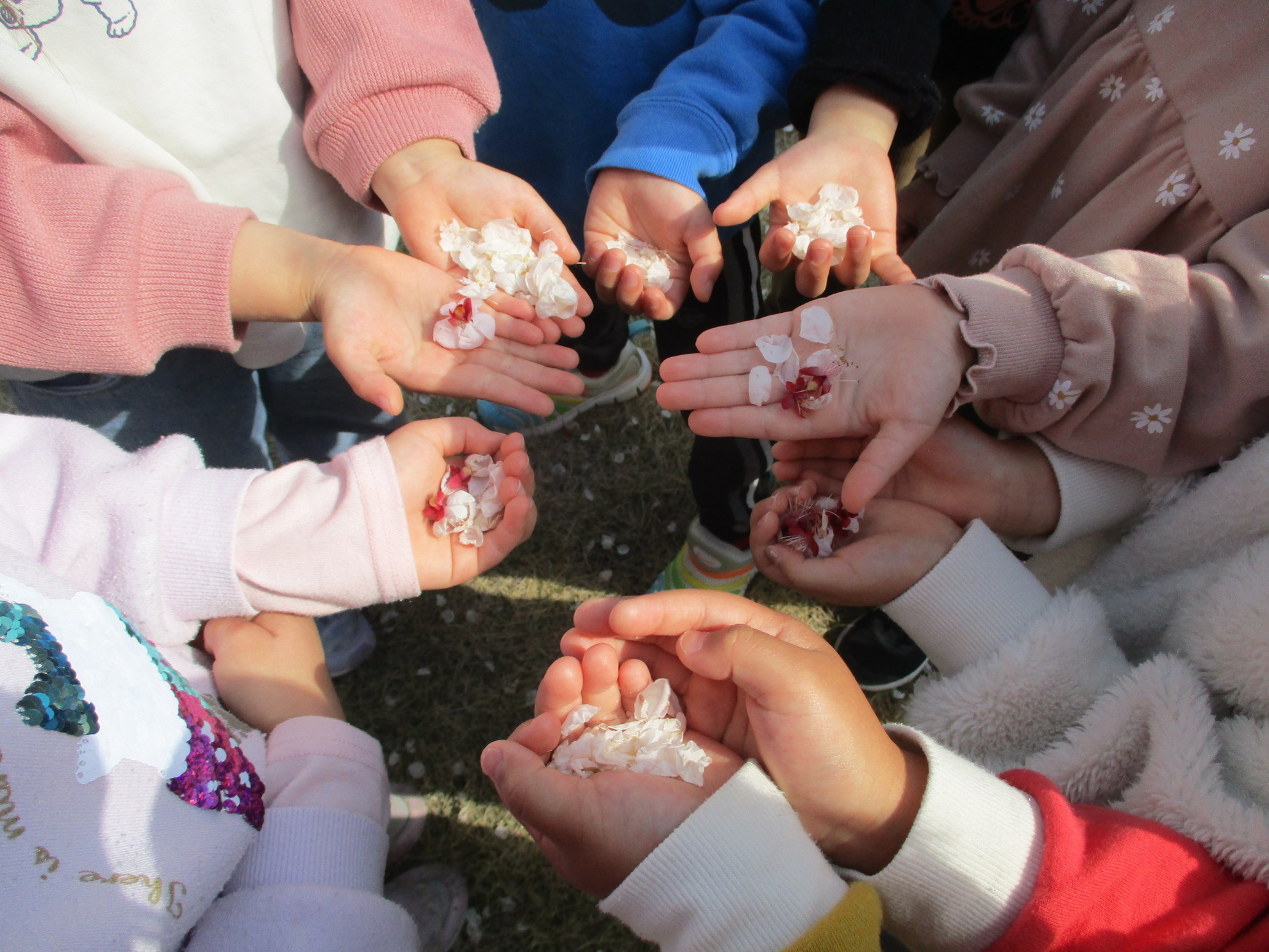 花の香りに誘われて・・・🌸 園内にあるあんずの木が満開になりました 下には花びらが沢山落ちていましたよ 子どもたちは嬉しそうに集めていました 持って帰りたいね・・・と話すお友だち 見て!こんなに沢山拾えたよ!! カテゴリー: 投稿日:2026年03月24日 次へ